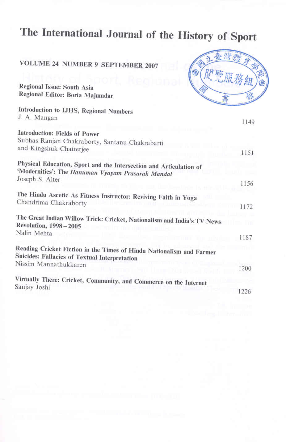 International Journal of the History of Sport 2007-09v.24-9(目次服務)