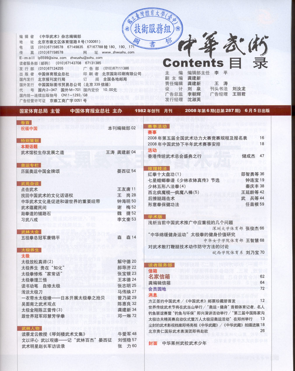 中华武术 2008-06No.287(目次服務)