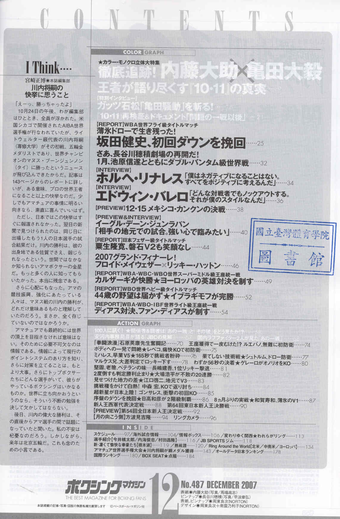 ボクシンクマカジン 2007-12No.487(目次服務)