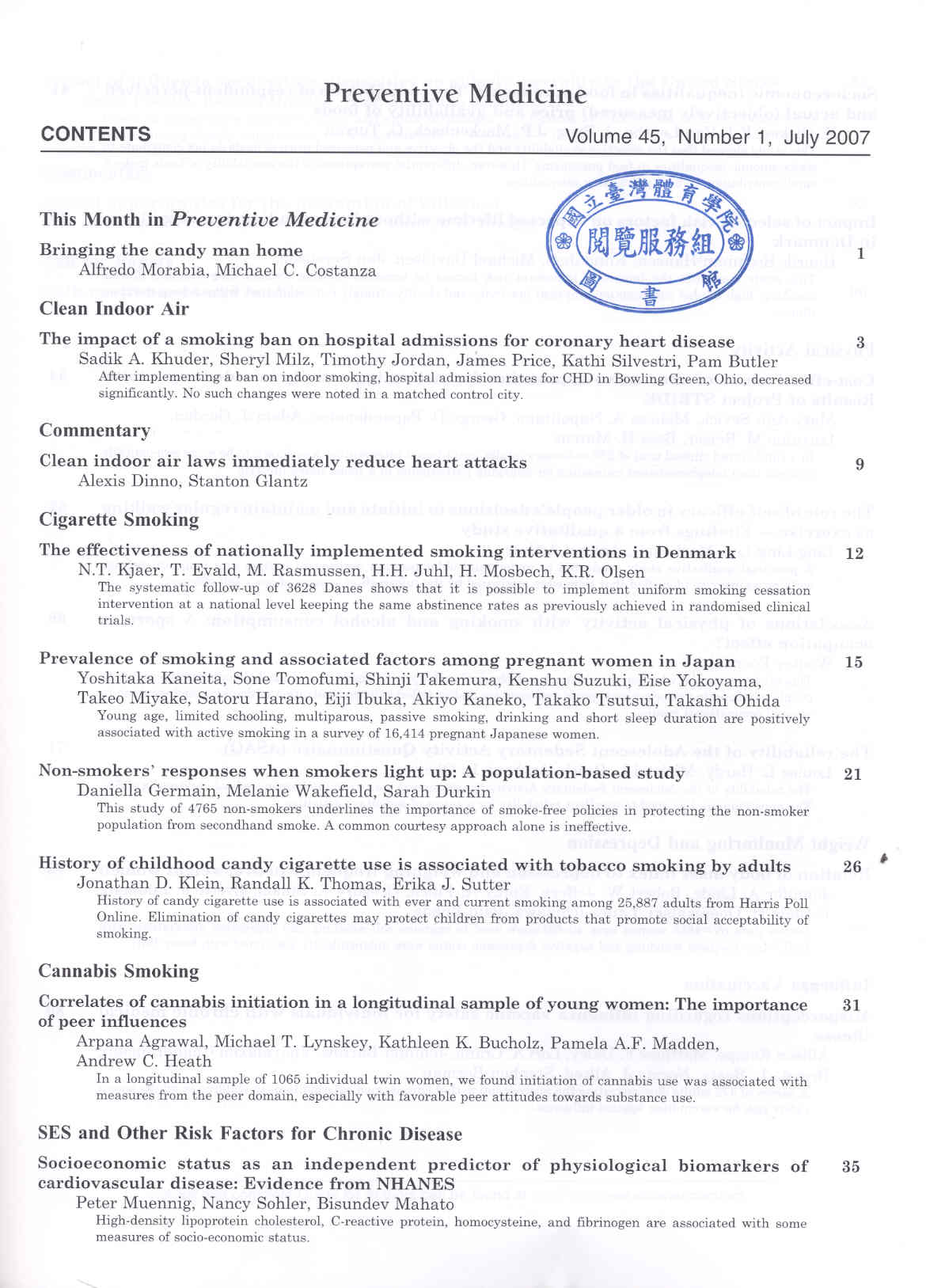 Preventive Medicine 2007-07v.45-1(目次服務)