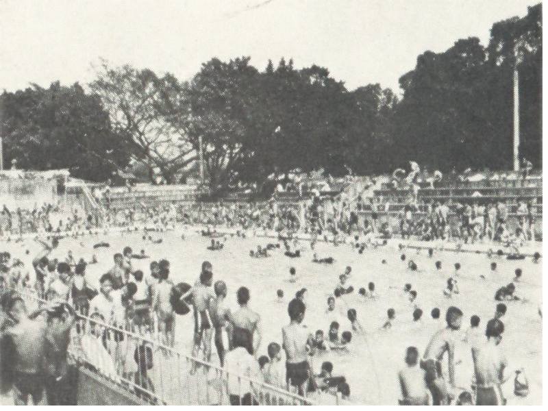 游泳池早年使用之盛況,猶如下水餃。