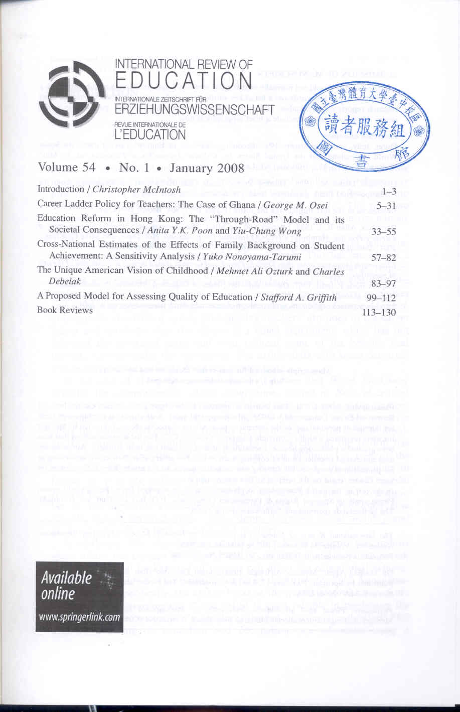 International Review of Education 2008-01v.54-1(目次服務)
