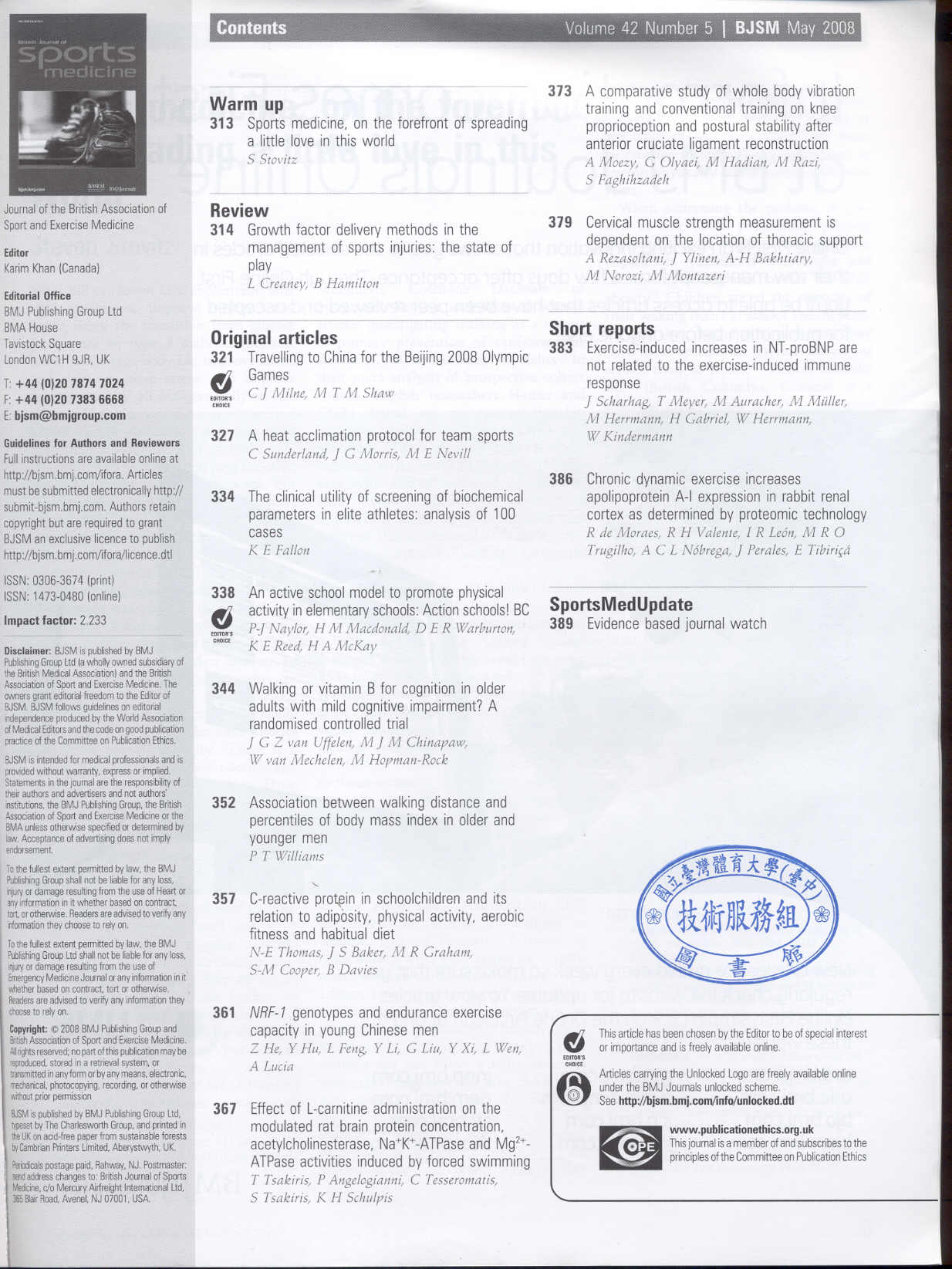 British Journal of Sports Medicine 2008-05v.42-5(目次服務)