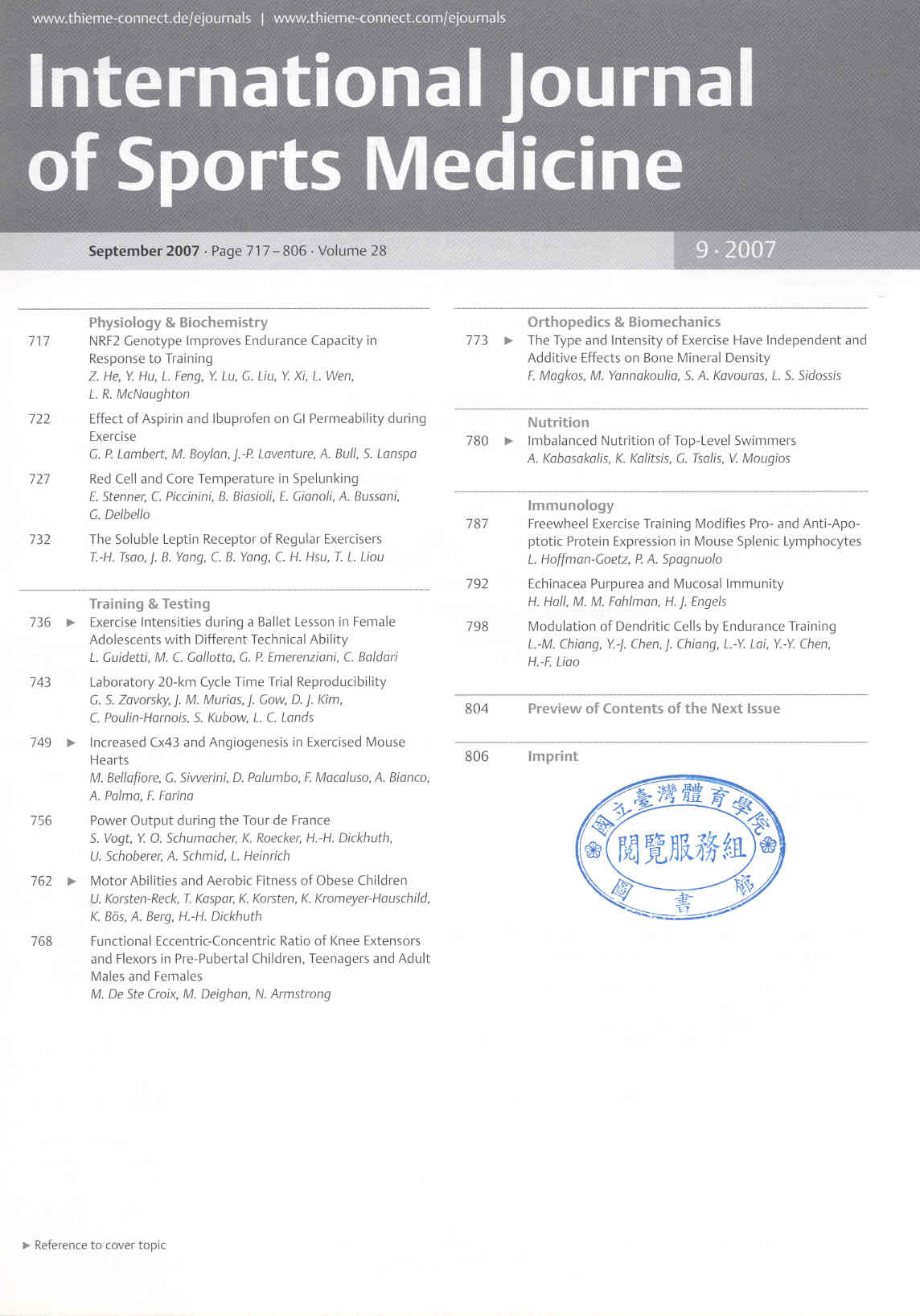 International Journal of Sports Medicine 2007-09v.28-9(目次服務)