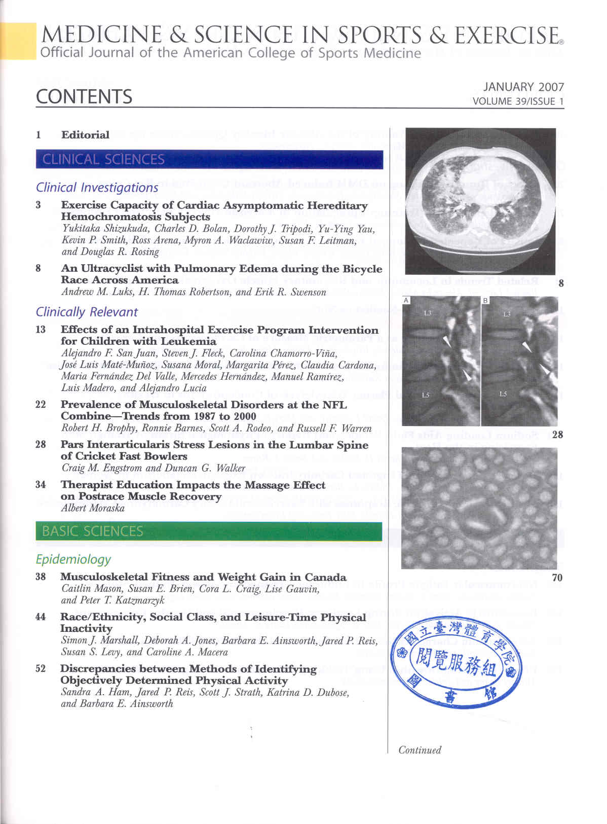 Medicine and Science in Sport and Exercise 2007-01v.39-1(目次服務)