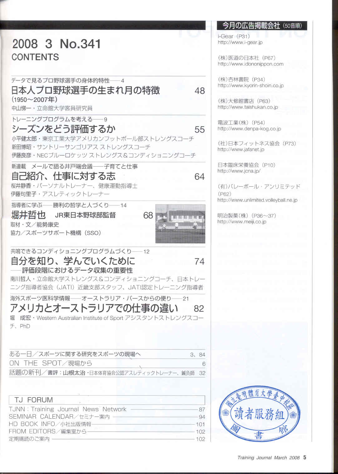 月刊トレ—ニング・ジャ—ナル 2008-03v.30-3(目次服務)