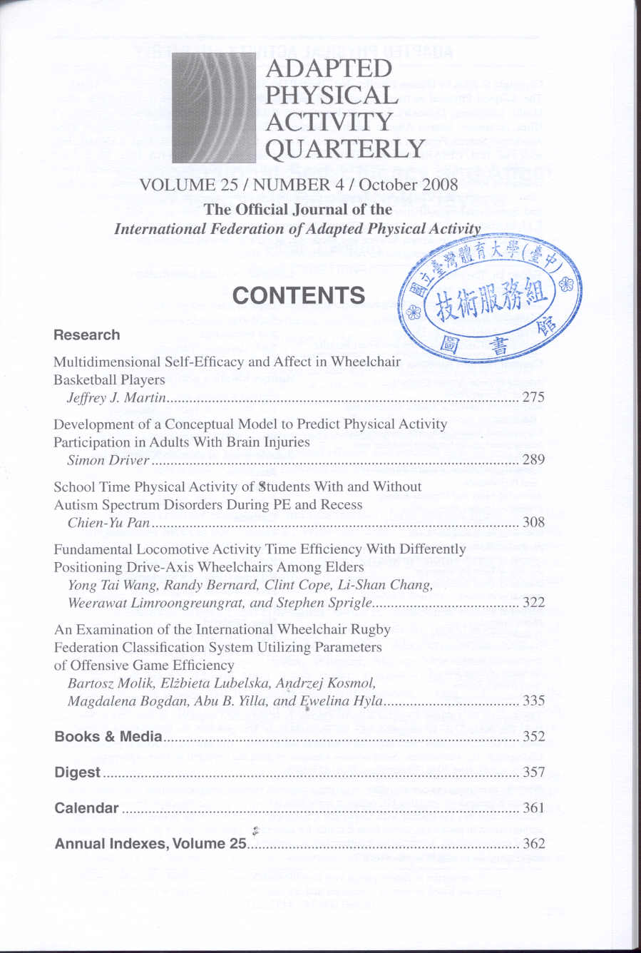 Adapted Physical Activity Quarterly 2008-10v.25-4(目次服務)