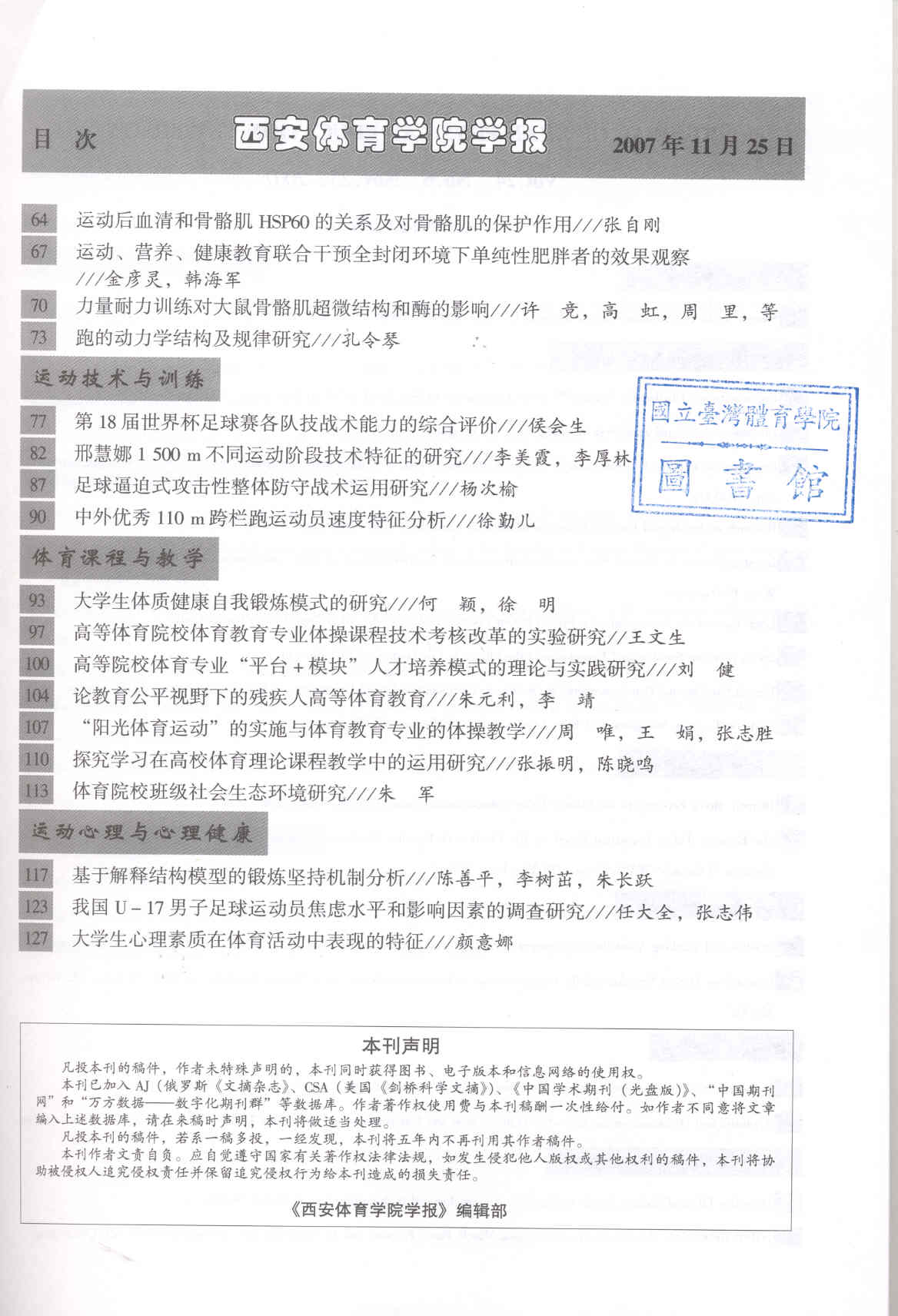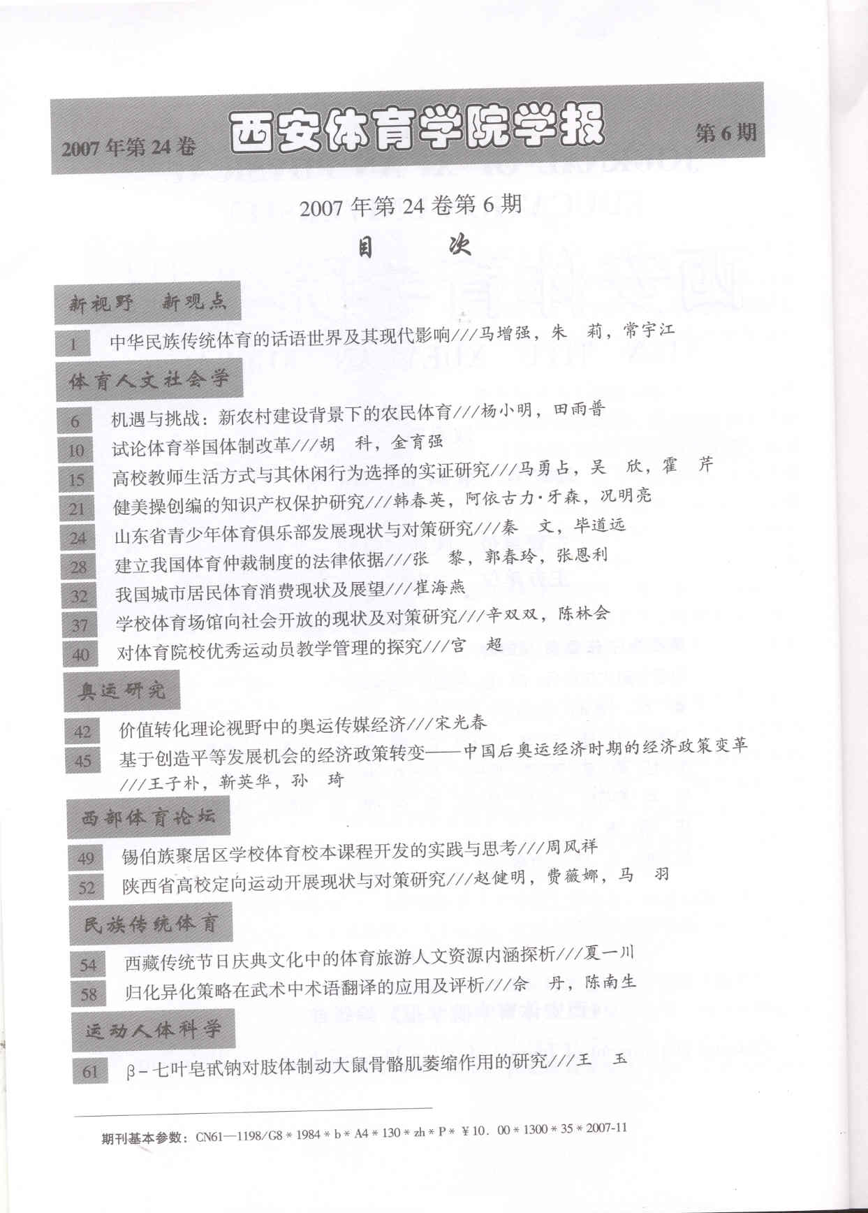 西安体育学院学报 2007-11v.24-6(目次服務)