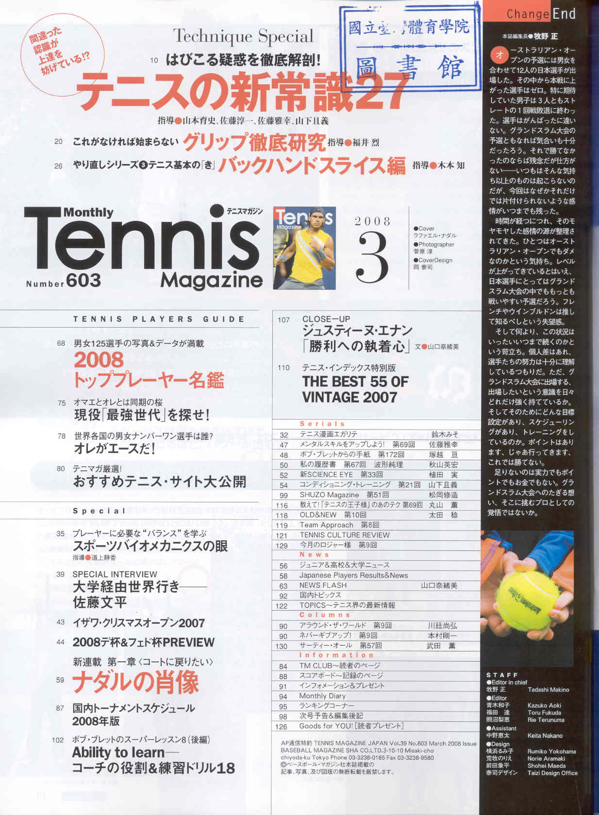 テニスマガジン 2008-03v.39-3(目次服務)