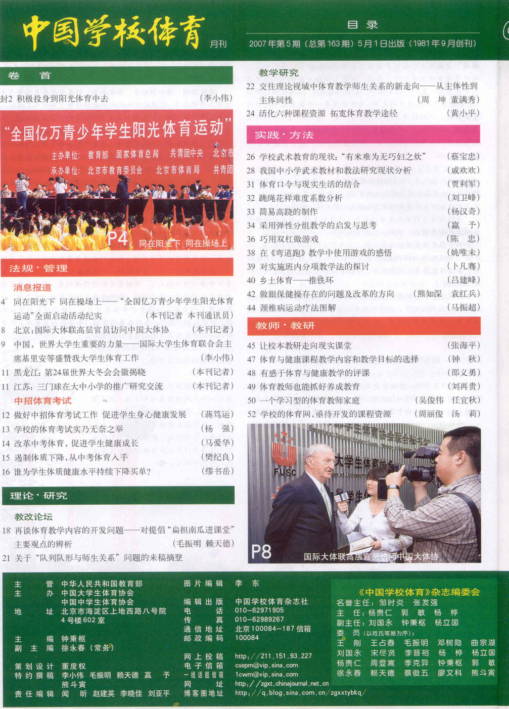 中国学校体育 2007-05No.163(目次服務)