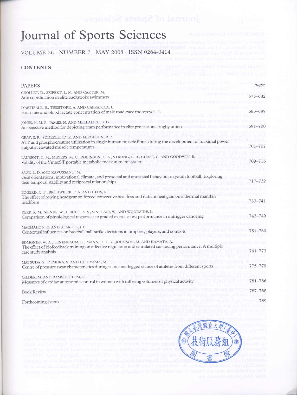 Journal of Sports Science 2008-05v.26-7(目次服務)