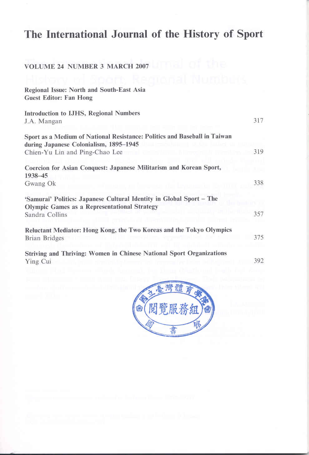 International Journal of the History of Sport 2007-03v.24-3(目次服務)