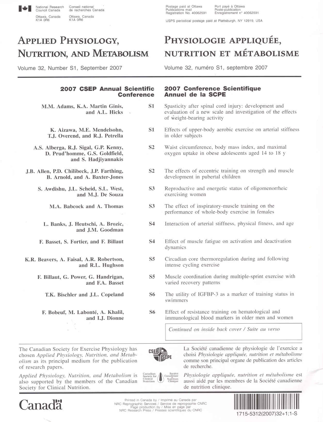 Applied Physiology, Nutrition and Metabolism 2007-09v.S1(目次服務)
