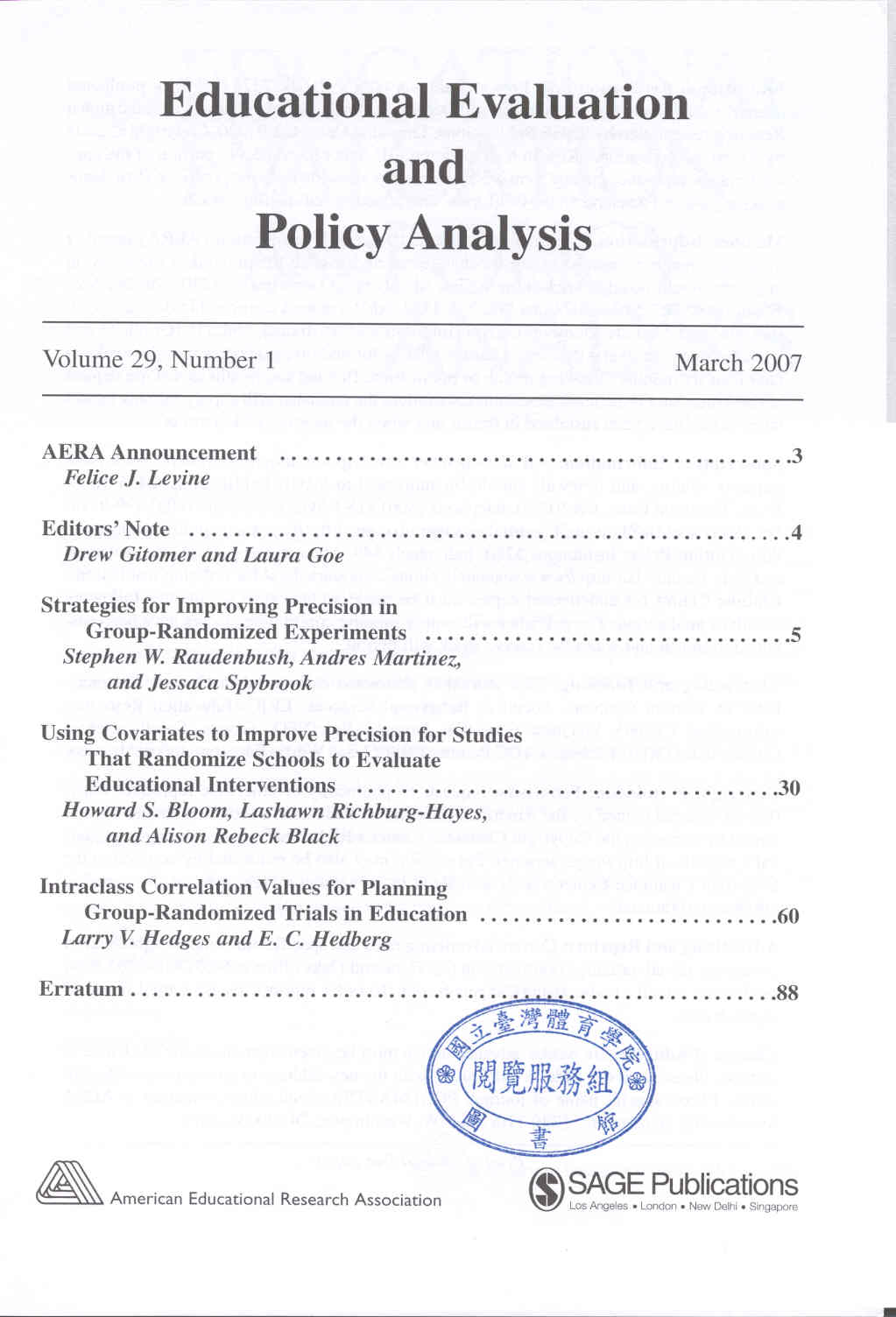 Educational Evaluation and Policy Analysis 2007-03v.29-1(目次服務)