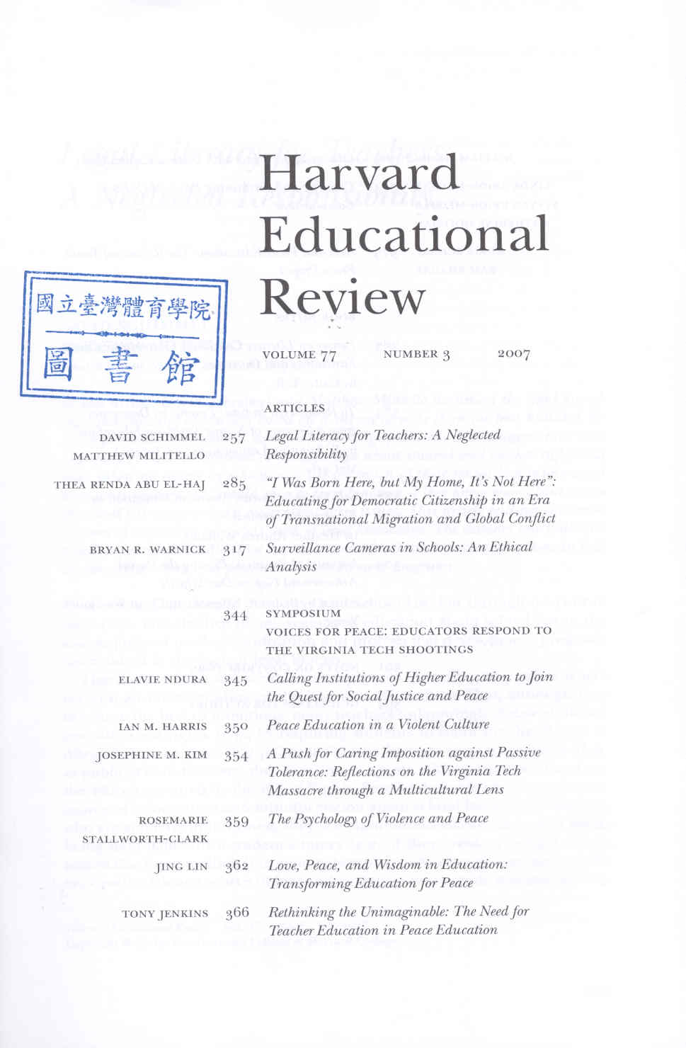 Harvard Educational Review 2007-09v.77-3(目次服務)