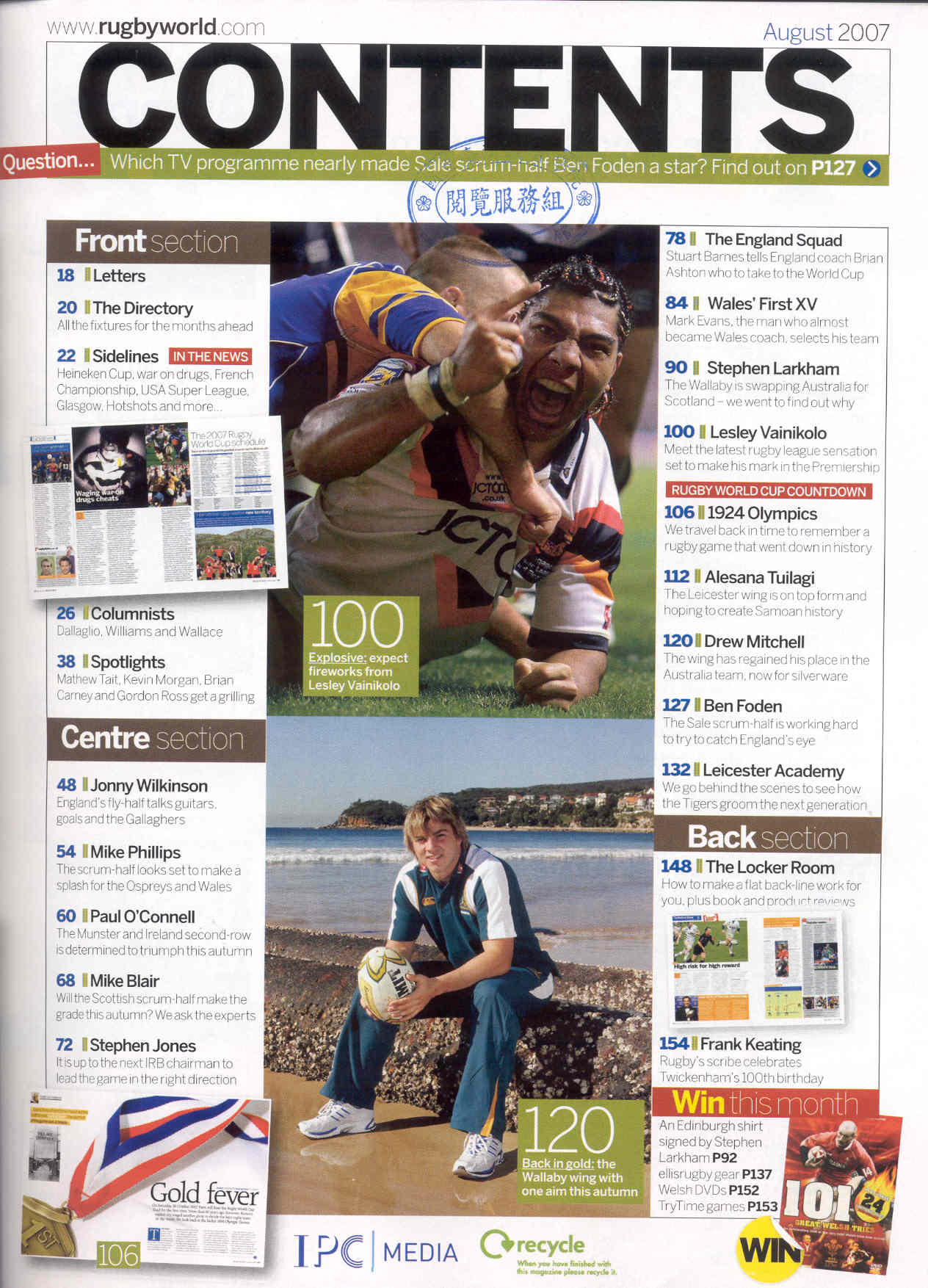 Rugby World 2007-08n.565(目次服務)