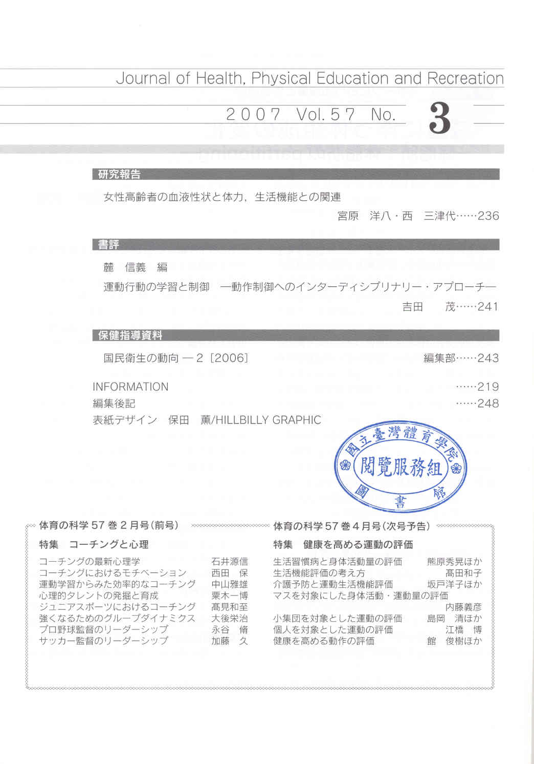 体育の科學 2007-03v.57-3(目次服務)