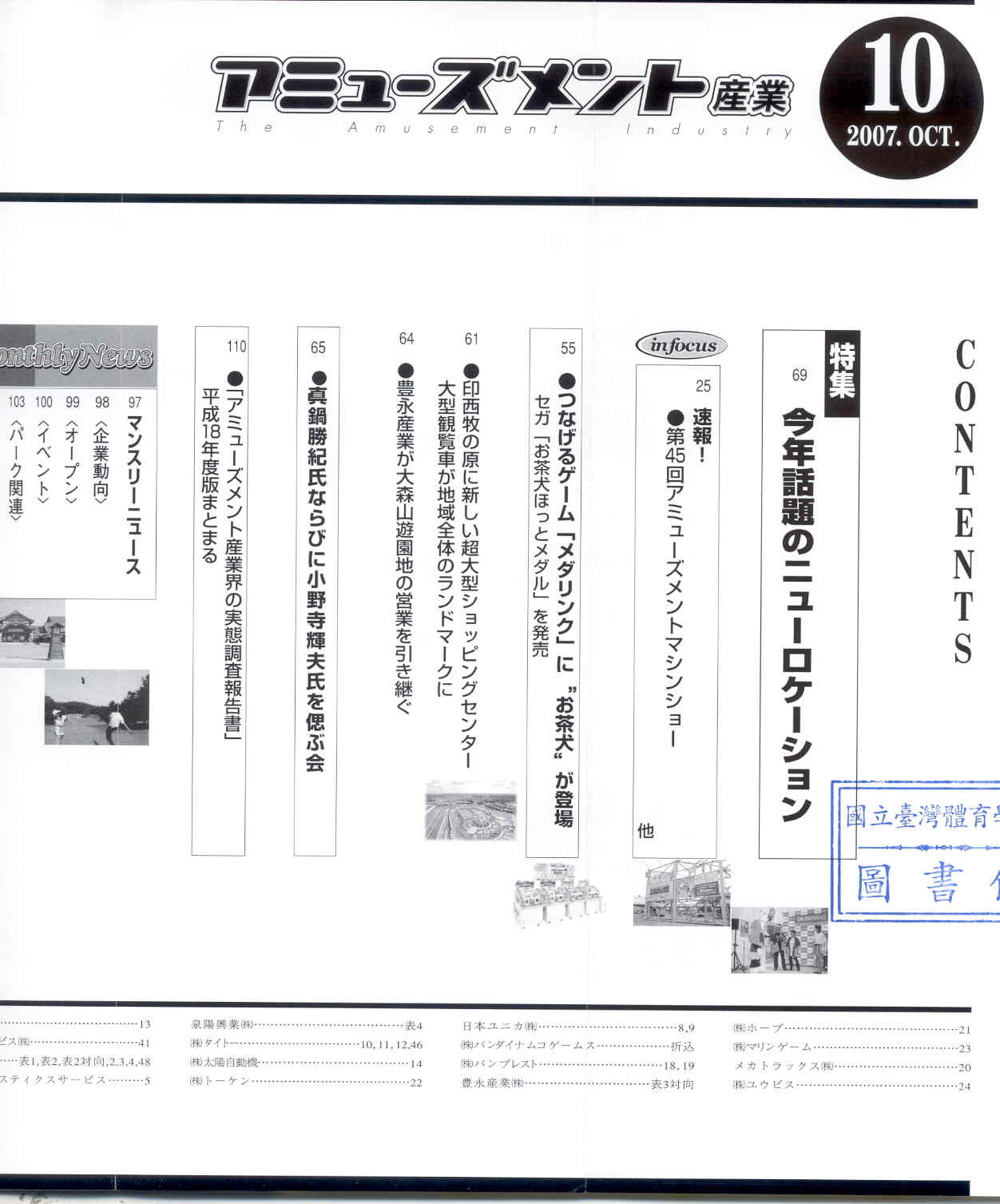 アミュ-ズメント産業 2007-10v.36-10(目次服務)