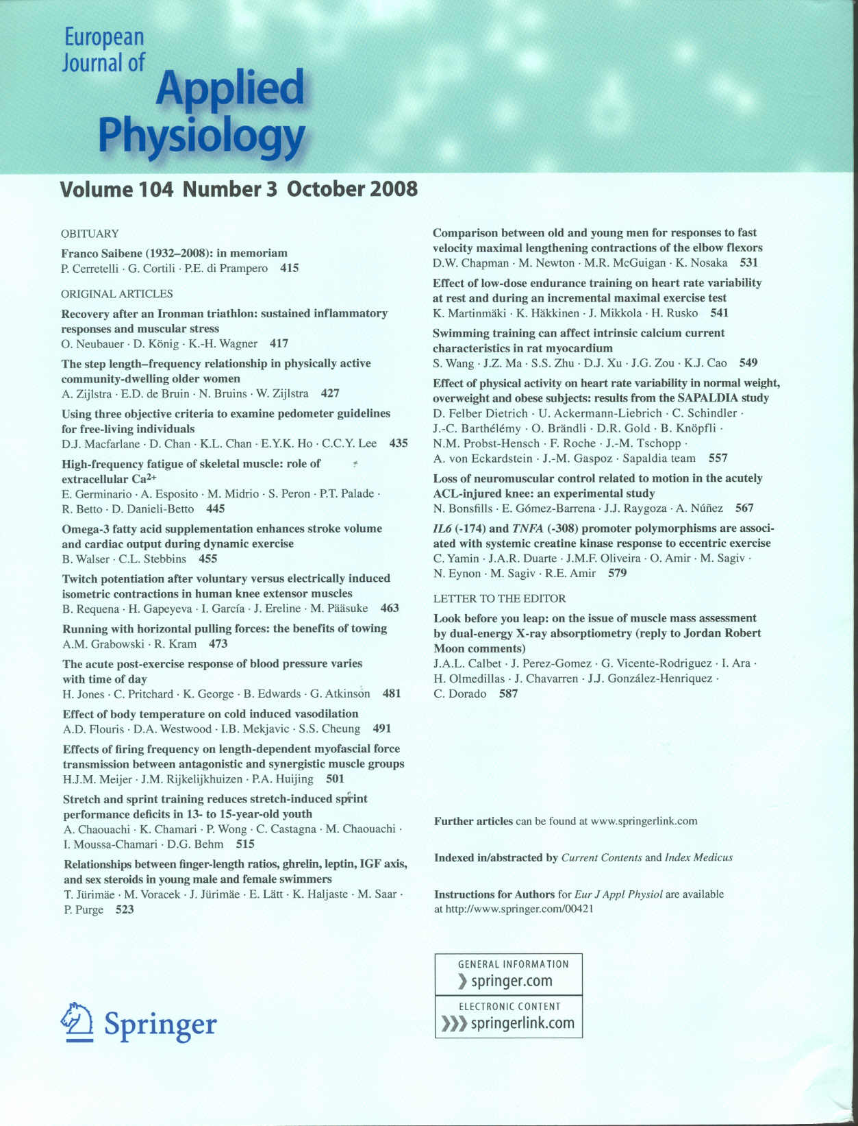 European Journal of Applied Physiology 2008-10v.104-3(目次服務)