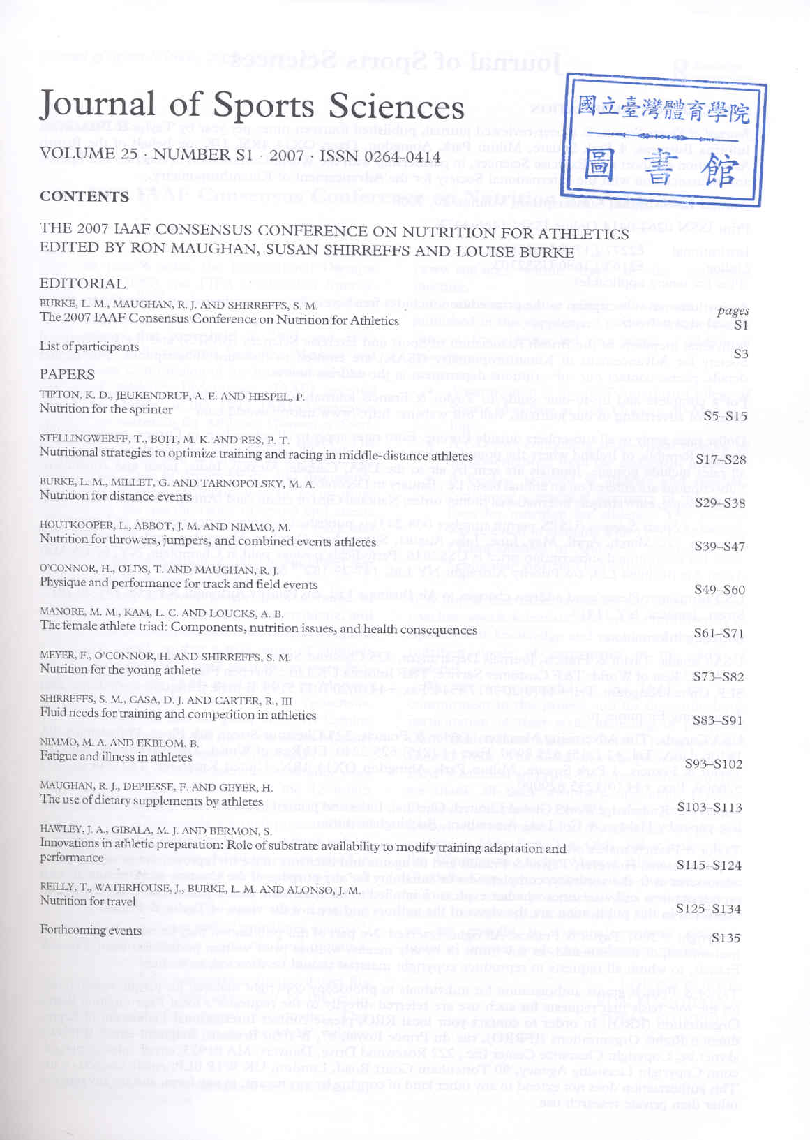 Journal of Sports Science 2007v.25-s1(目次服務)