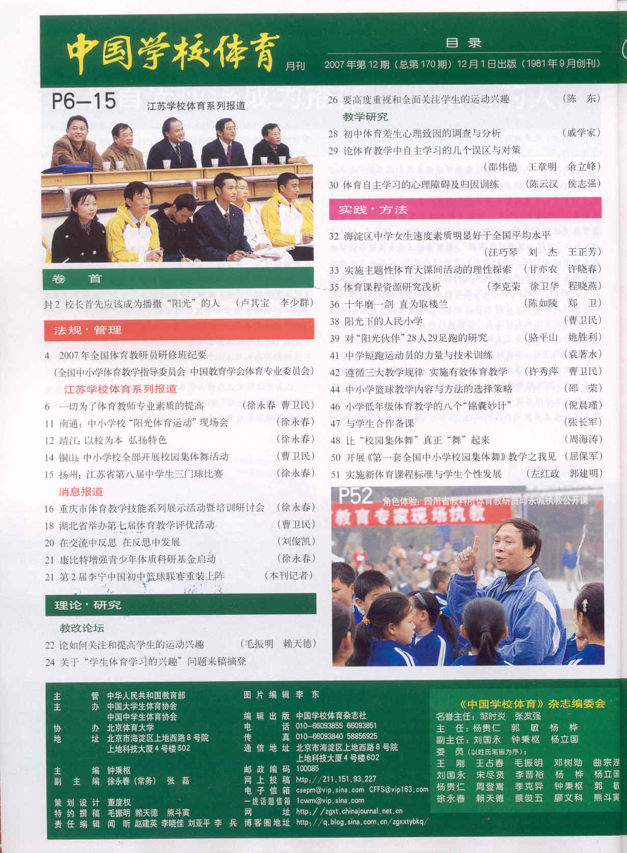 中国学校体育 2007-12No.170(目次服務)