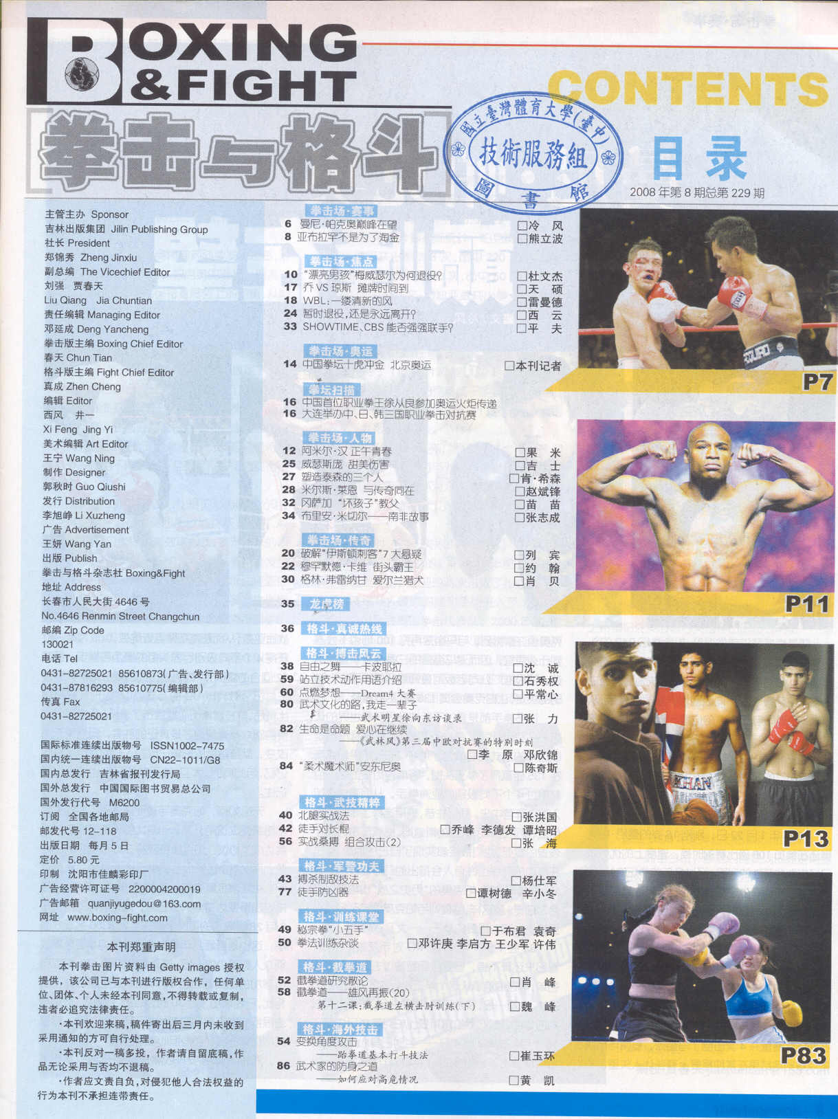 拳击与格斗 2008-08No.229(目次服務)