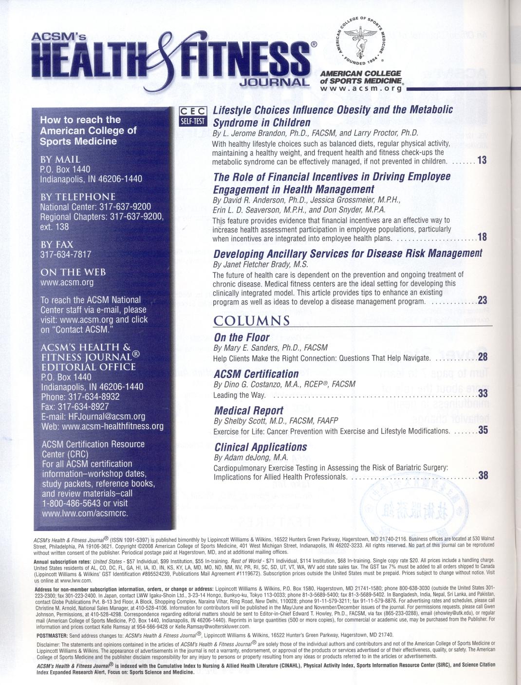 ACSM Health & Fitness Journal 2008-07v.12-4(目次服務)