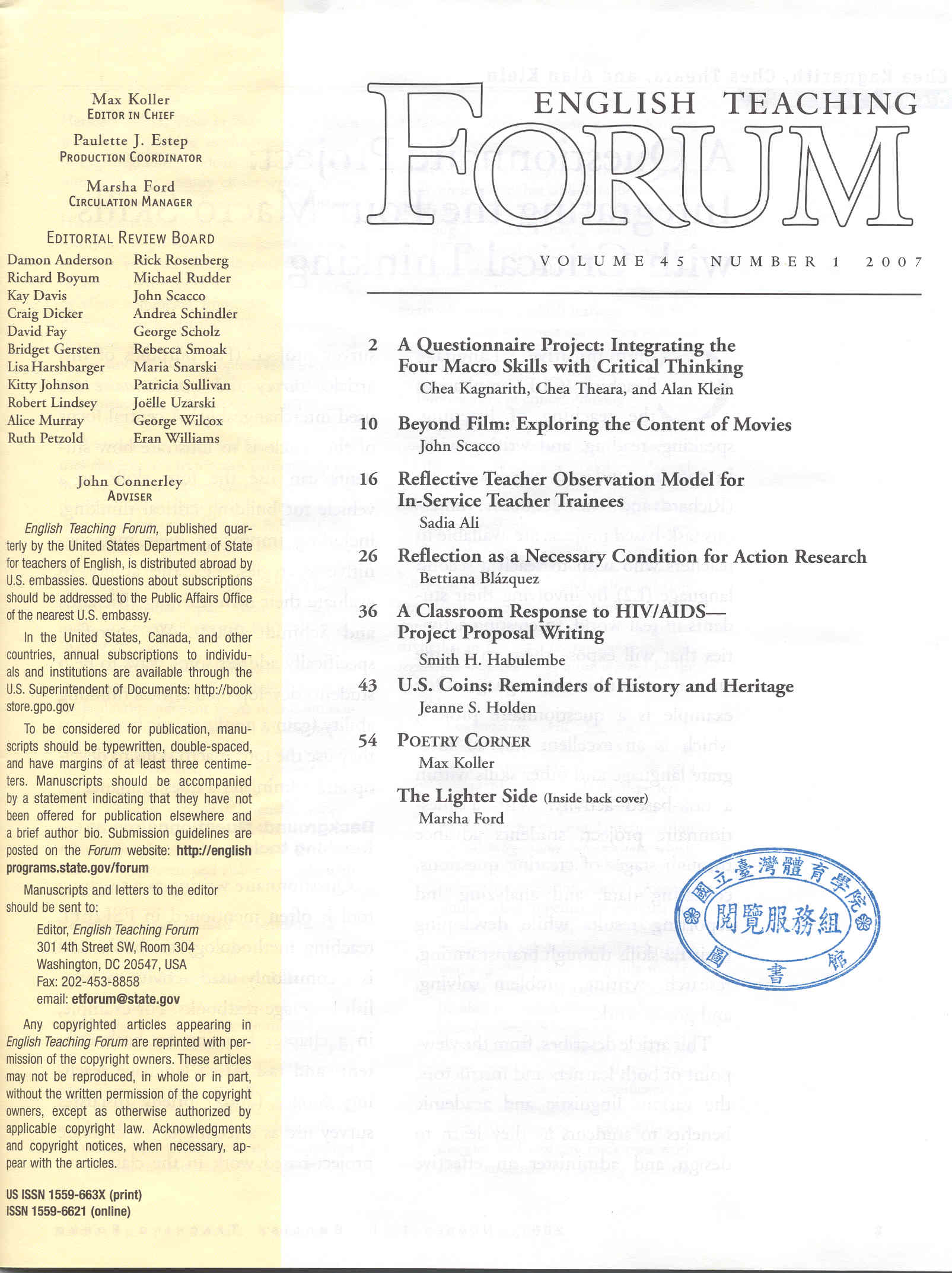 English Teaching Forum 2007-02v.45-1(目次服務)