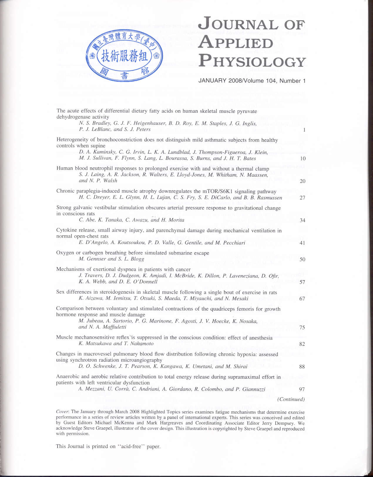 Journal of Applied Physiology 2008-01v.104-1(目次服務)
