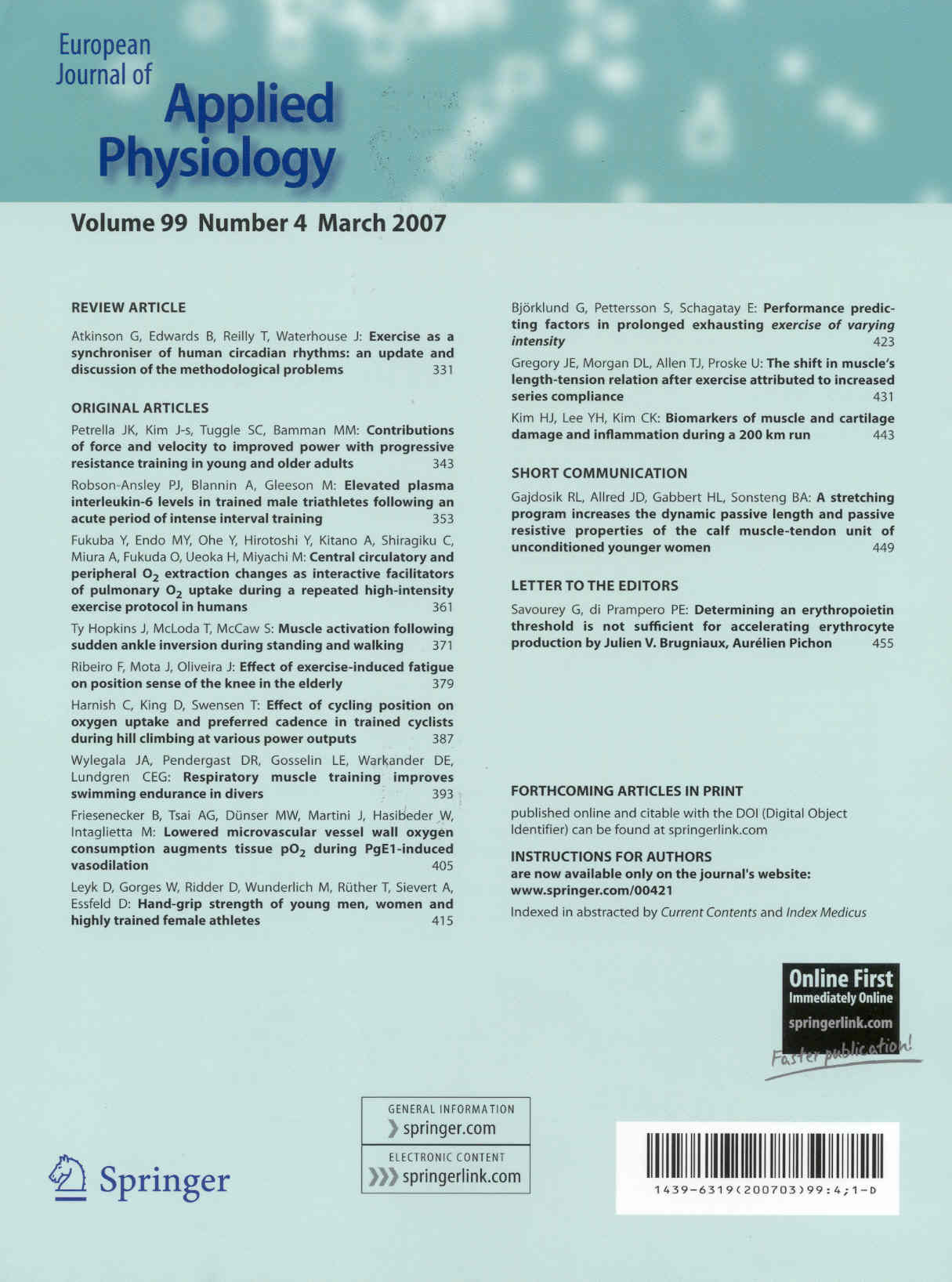 European Journal of Applied Physiology 2007-03v.99-4(目次服務)