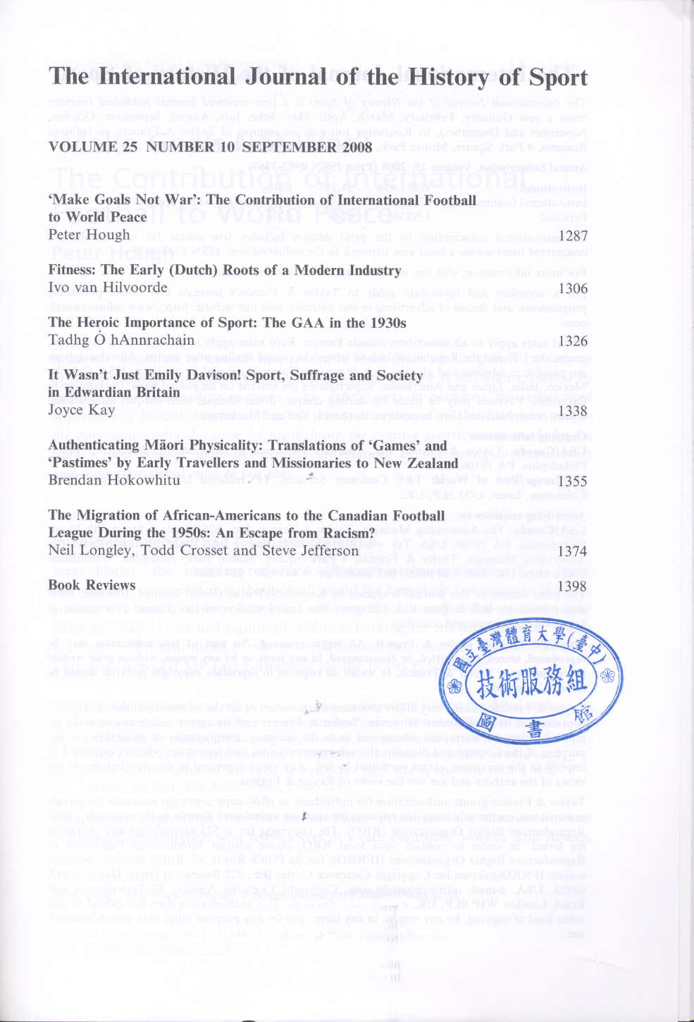 International Journal of the History of Sport 2008-09v.25-10(目次服務)