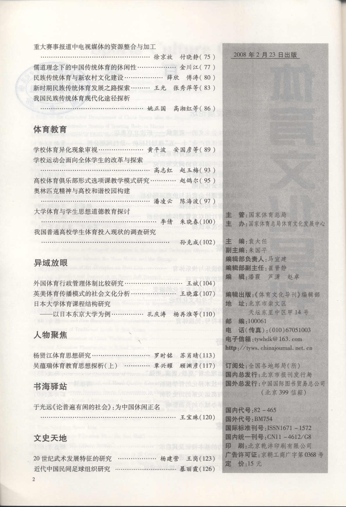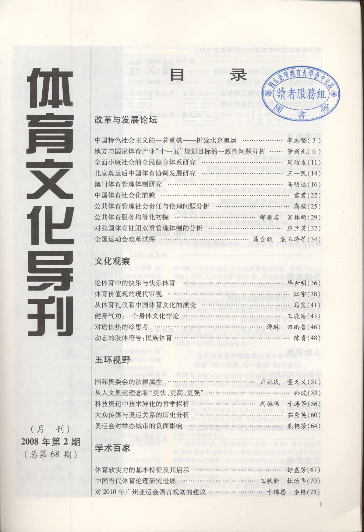 体育文化导刊 2008-02No.68(目次服務)