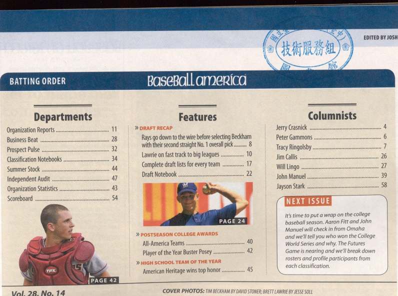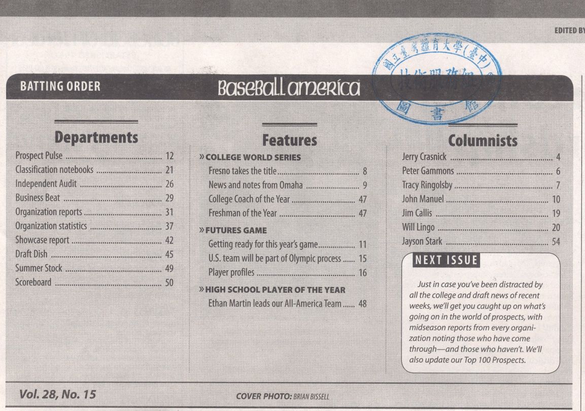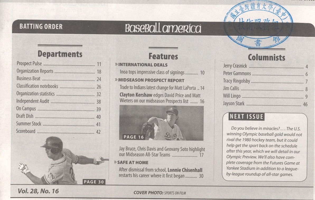 Baseball America 2008-07v.28-14、15、16(目次服務)