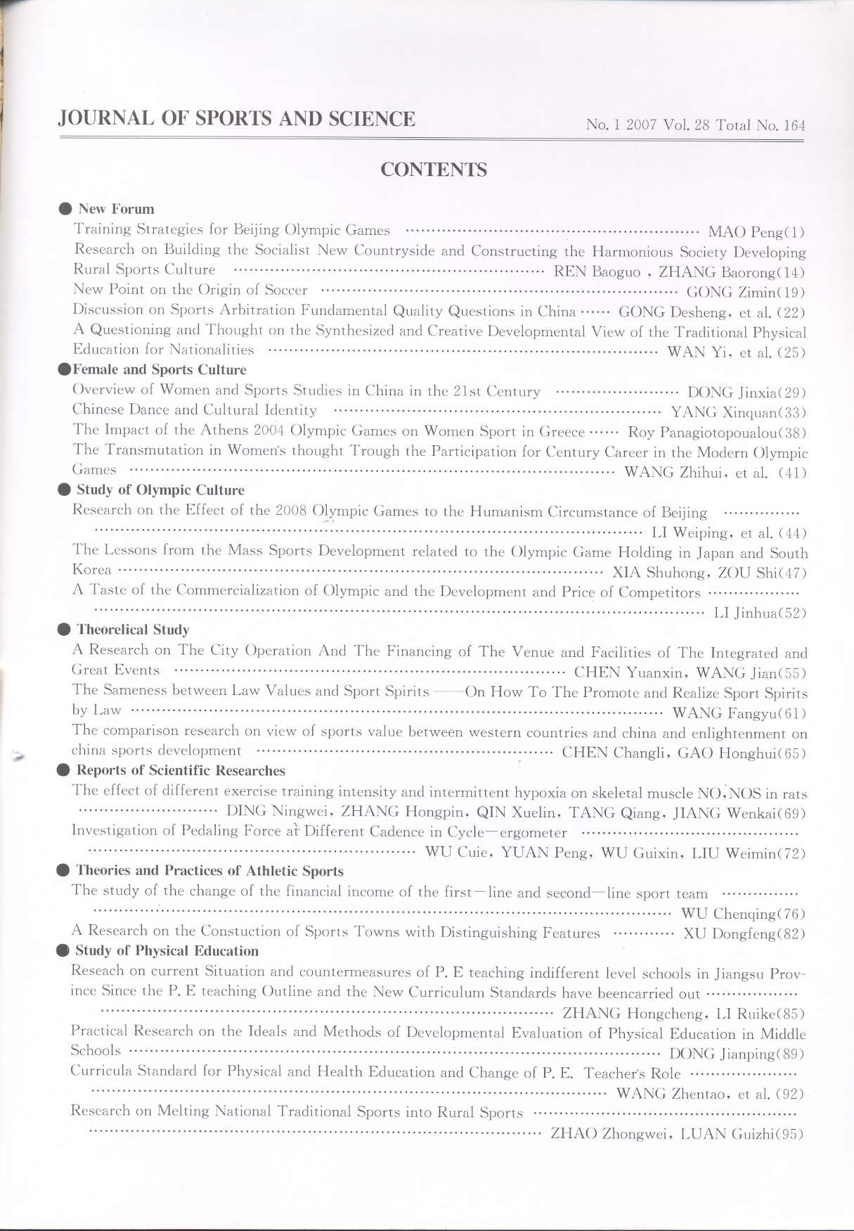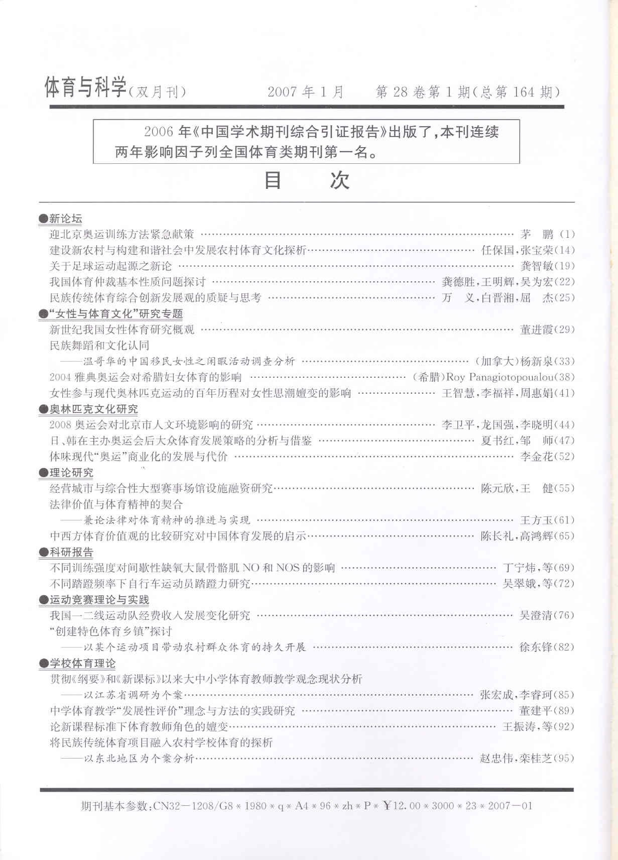体育与科学 2007-01No.164(目次服務)