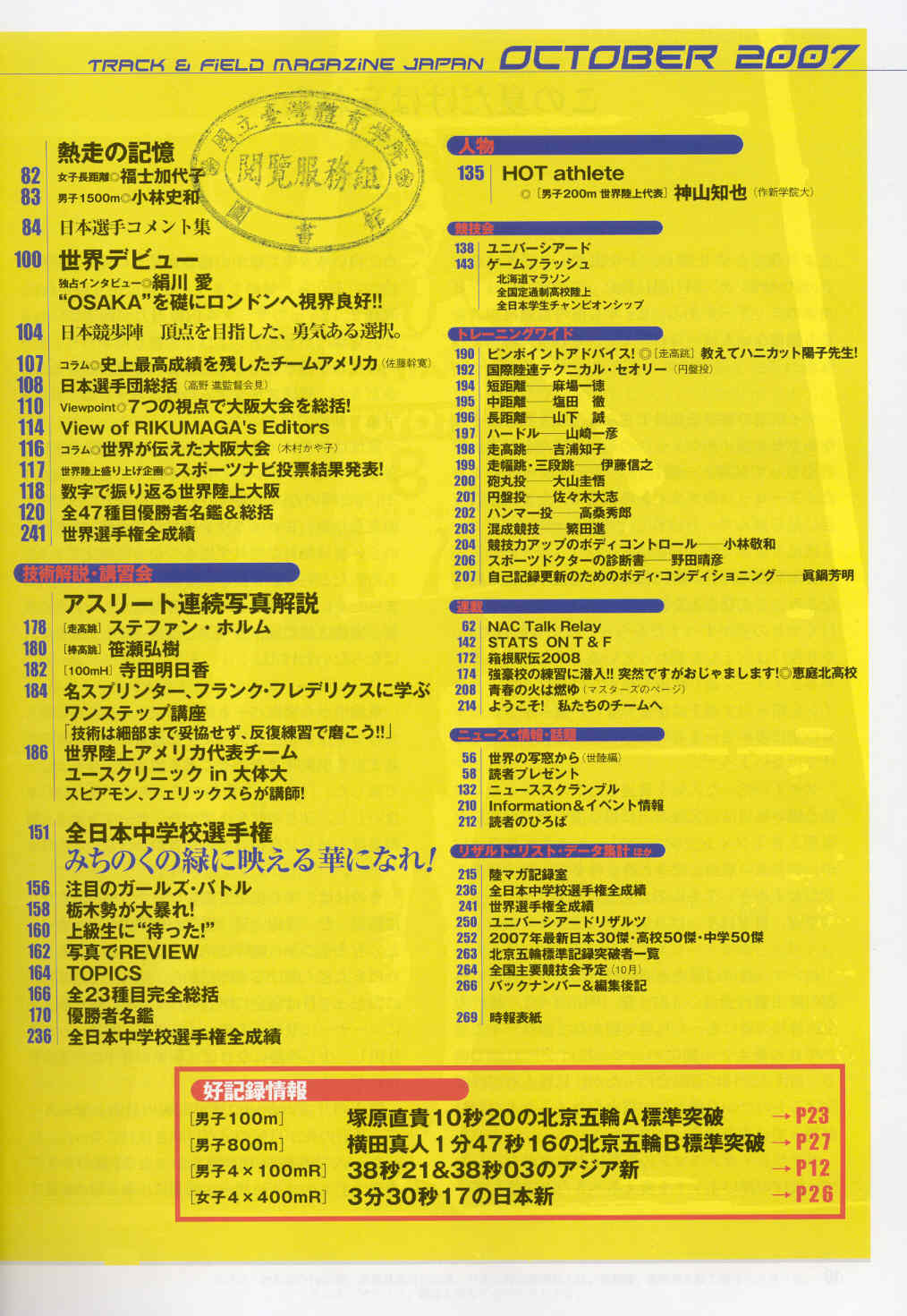 陸上競技 2007-10(目次服務)