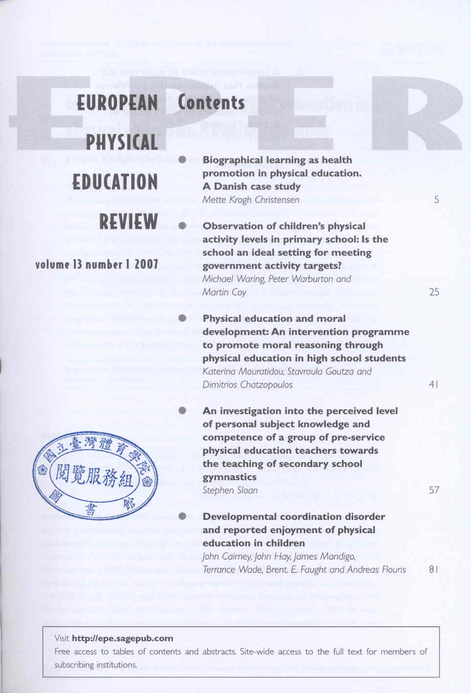 European Physical Education Review 2007-02v.13-1(目次服務)