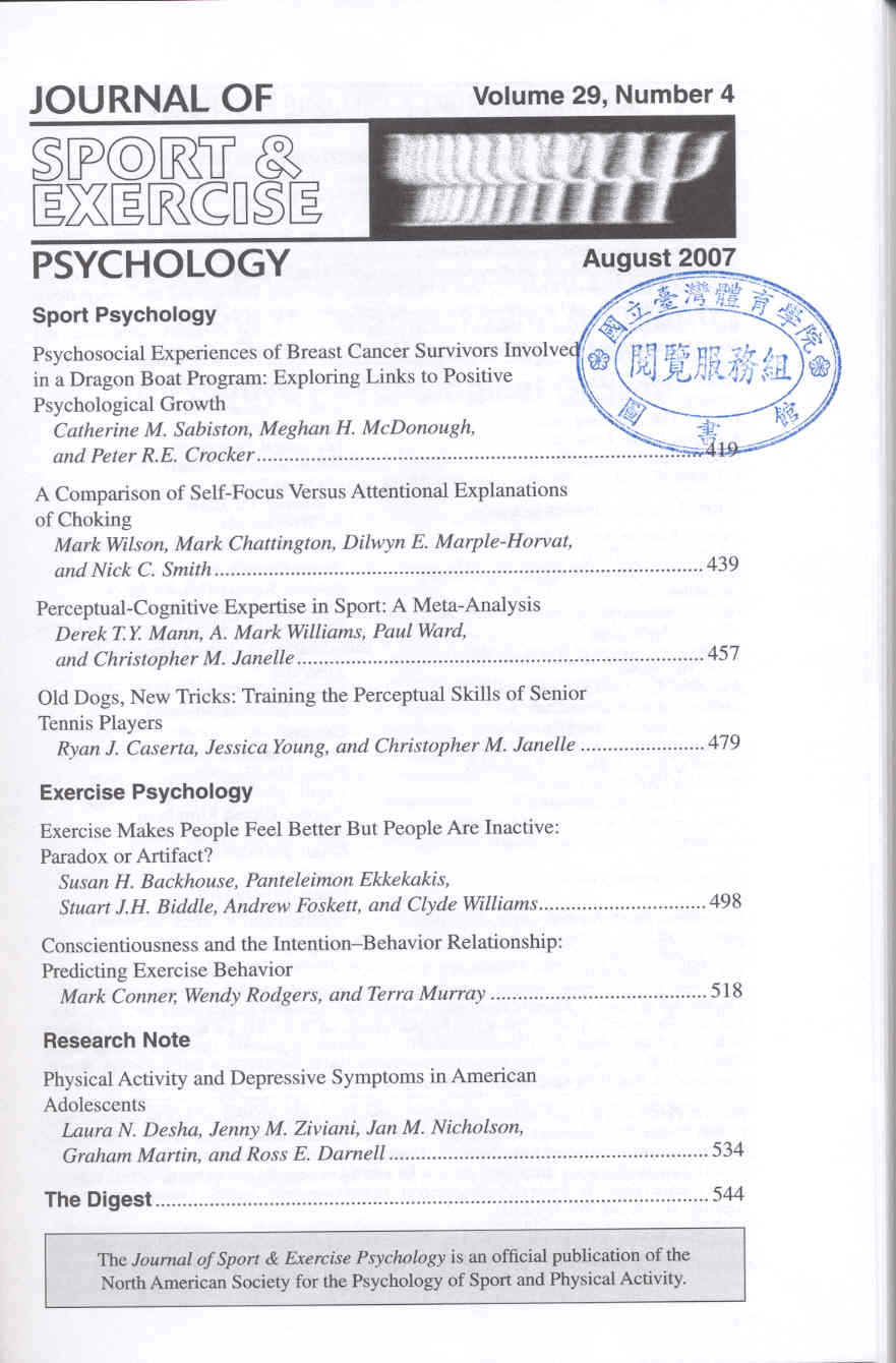 Journal of Sport and Exercise Psychology 2007-08v.29-4(目次服務)