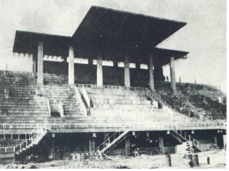 即將完工的台灣省立體育場司令台的景觀