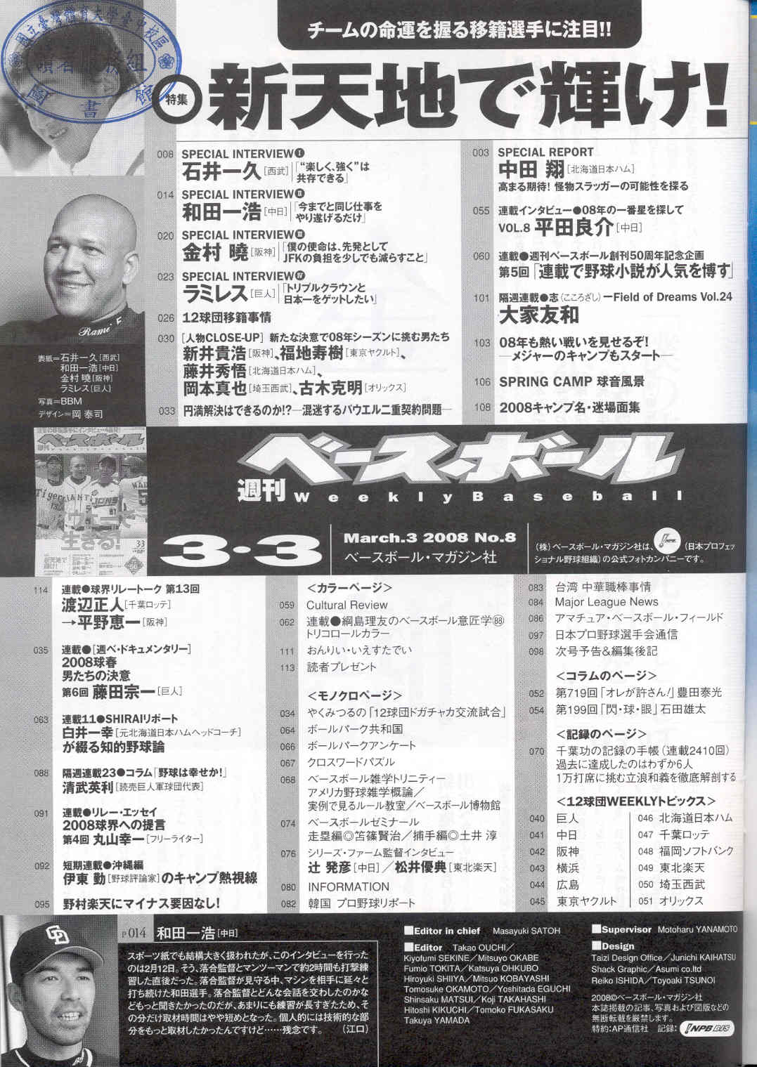 ベ—スボ—ルマガジン 2008-03v.63-8(目次服務)