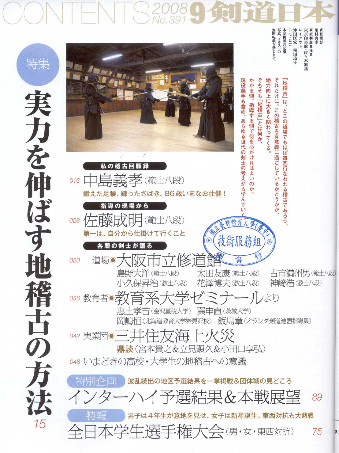 剣道日本 2008-09No.391(目次服務)