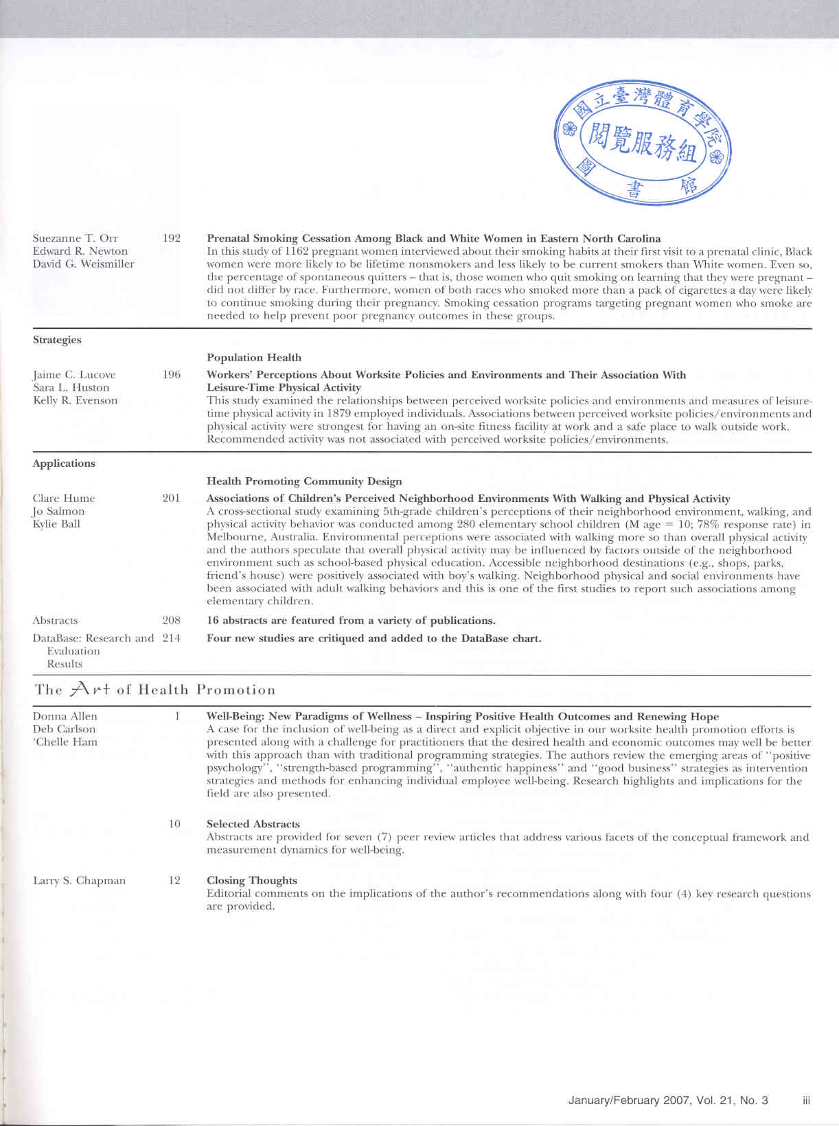 American Journal of Health Promotion 2007-01v.21-3(目次服務)