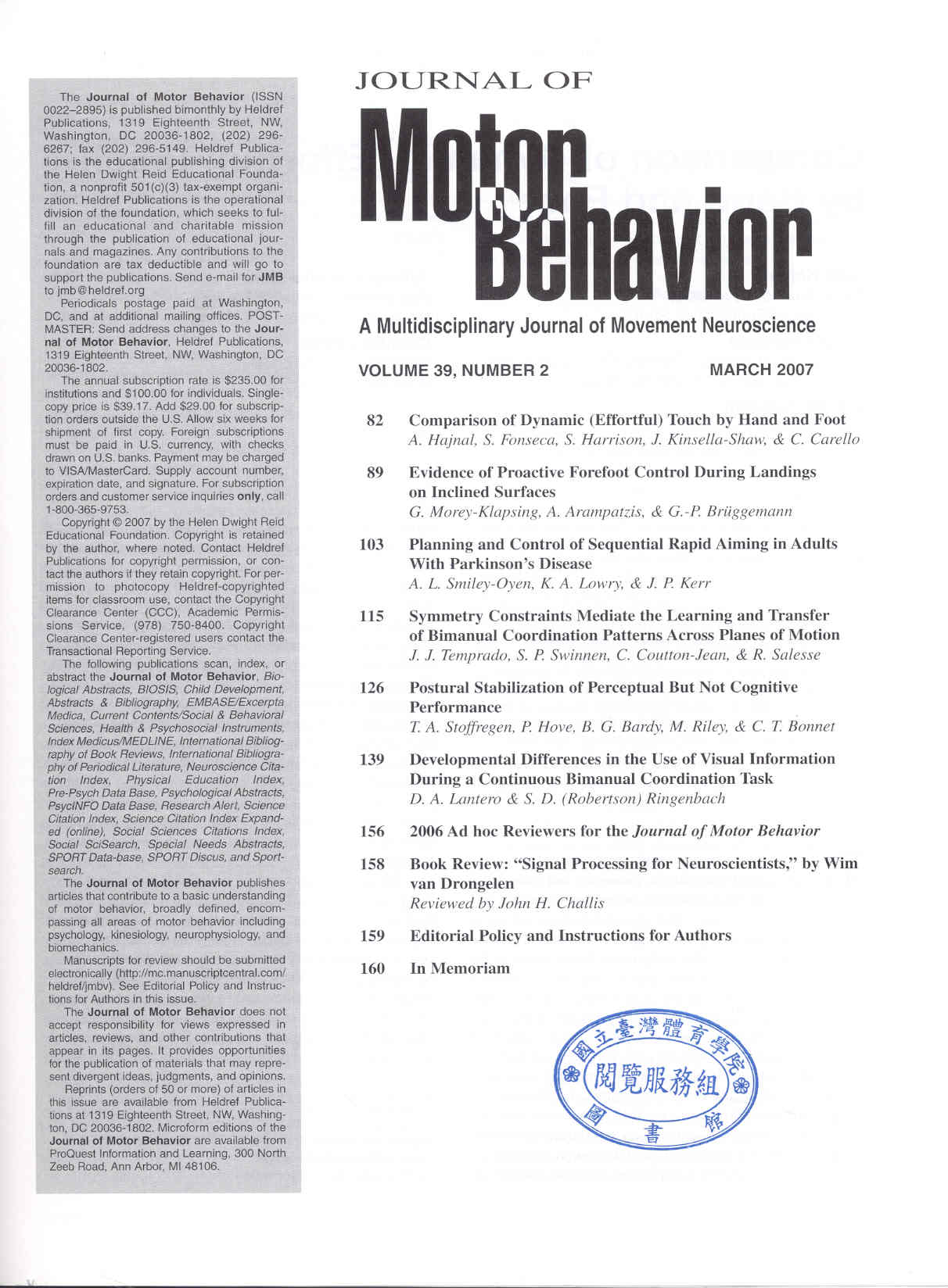 Journal of Motor Behavior 2007-03v.39-2(目次服務)