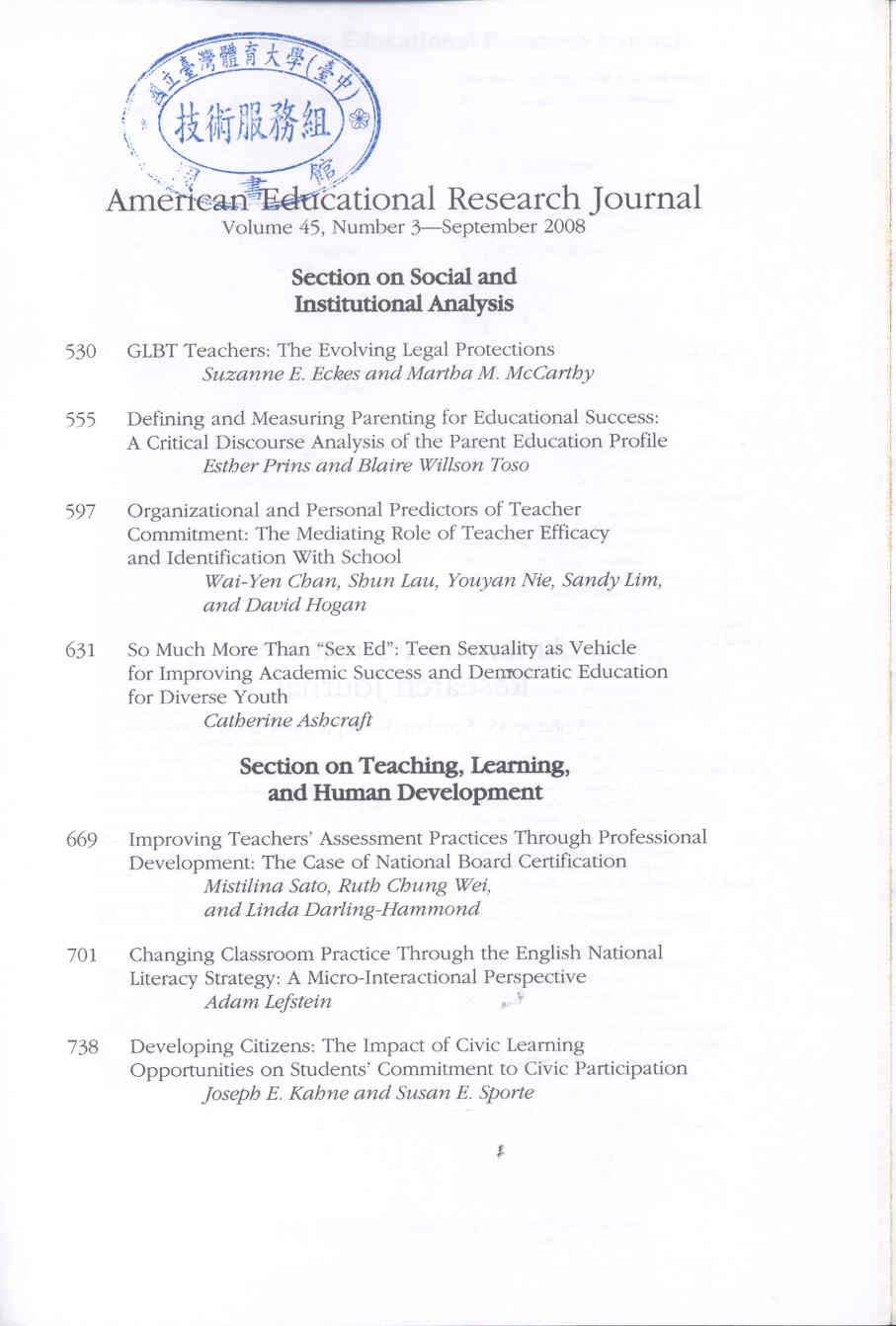 American Educational Research Journal 2008-09v.45-3(目次服務)