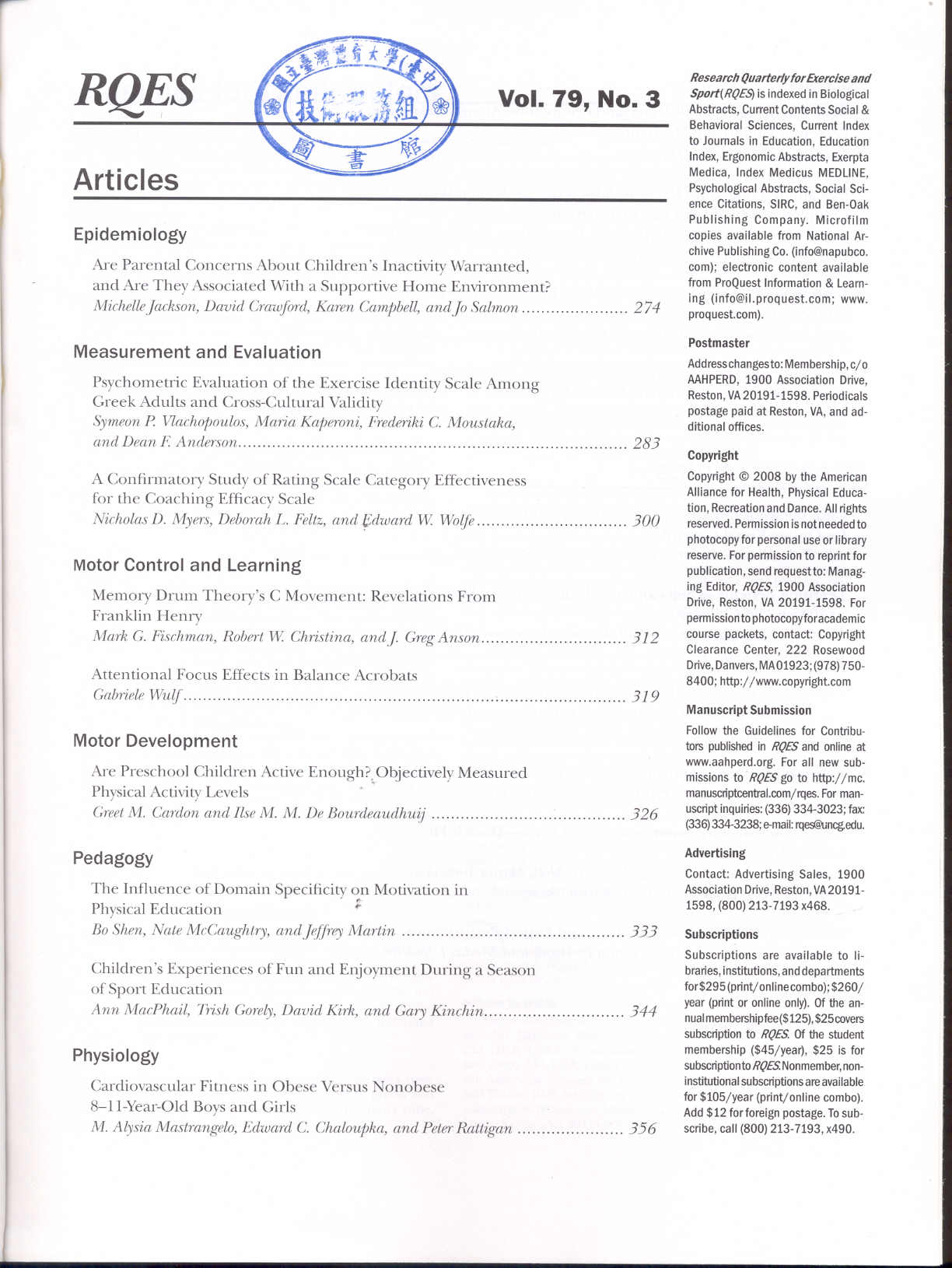 Research Quarterly for Exercise and Sport 2008-09v.79-3(目次服務)