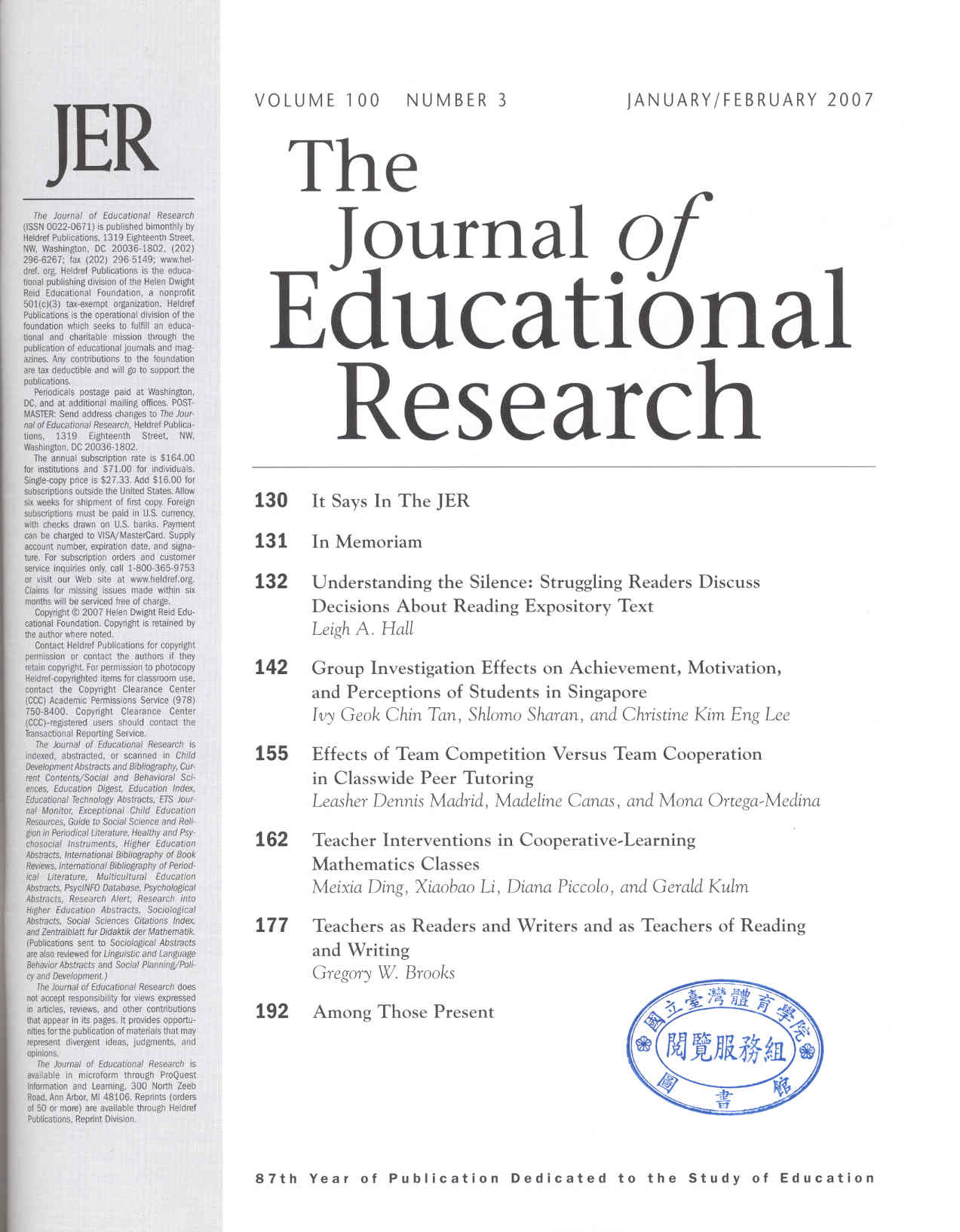 Journal of Educational Research 2007-01v.100-3(目次服務)