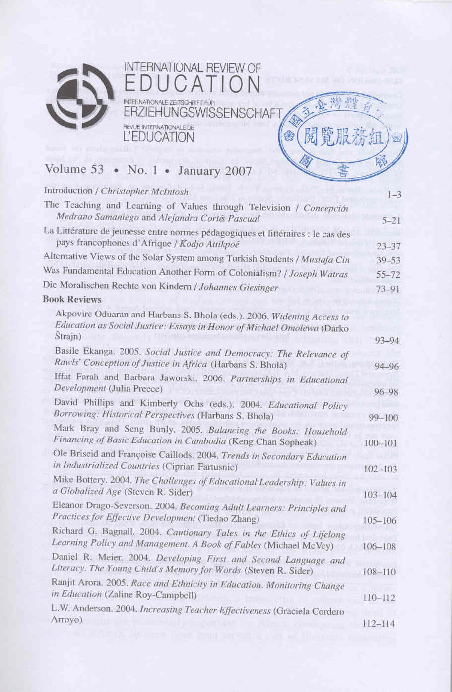 International Review of Education 2007-01v.53-1(目次服務)