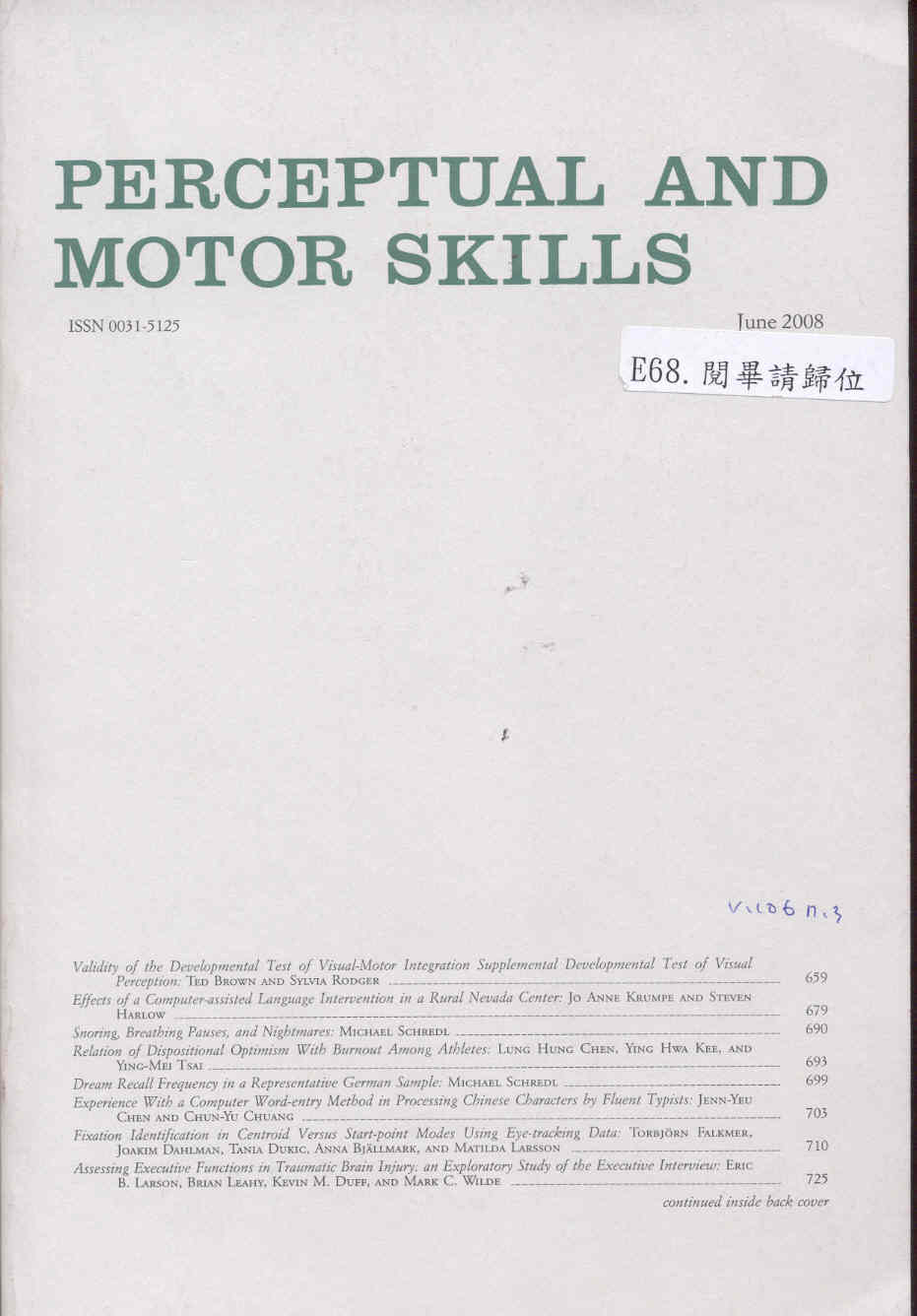 Perceptual and Motor Skills 2008-06v.106-3(目次服務)