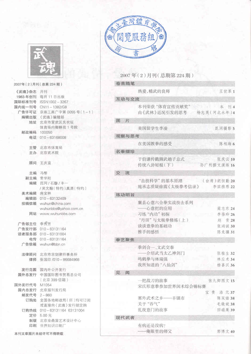 武魂 2007-02No.224(目次服務)