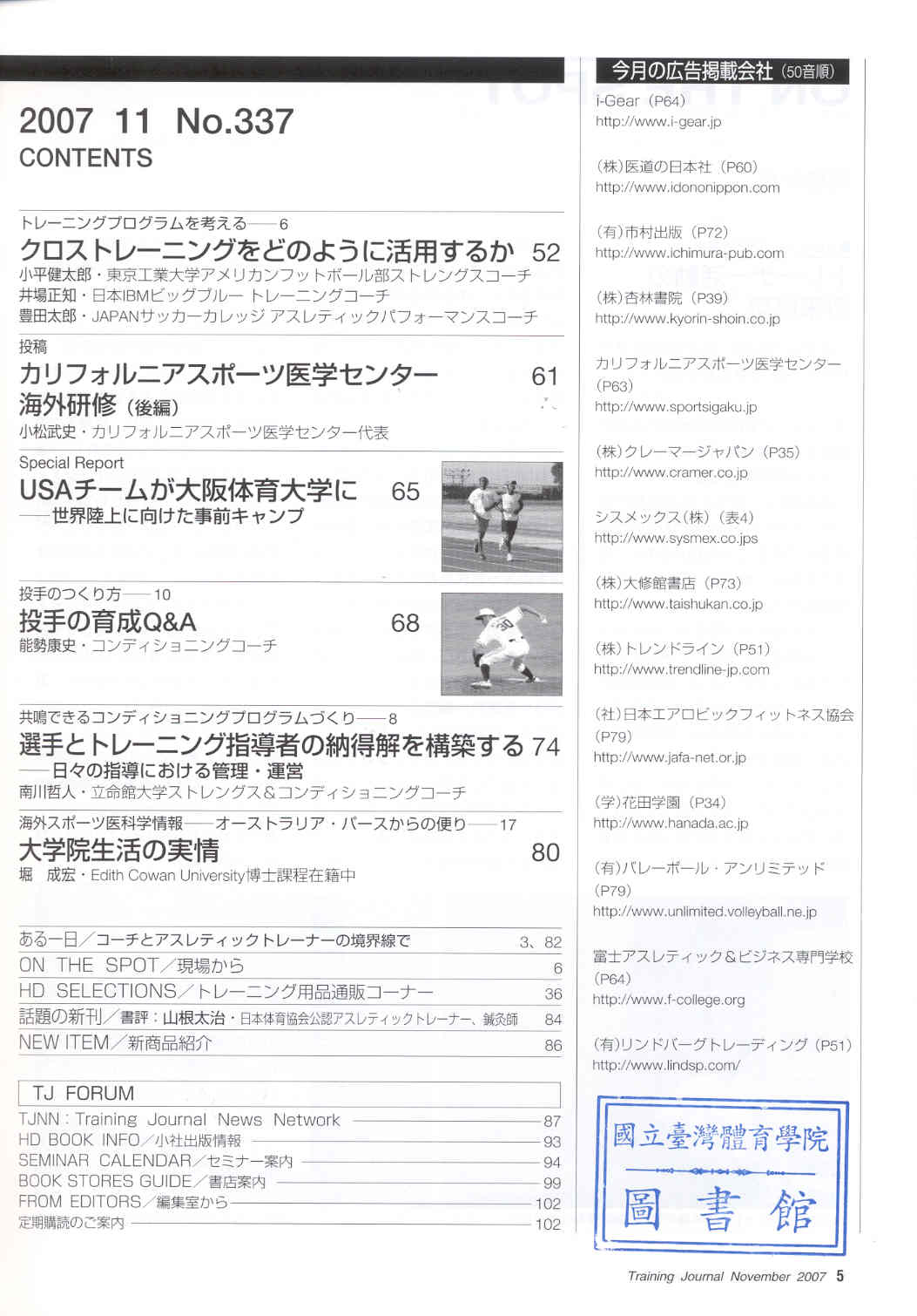 月刊トレ—ニング・ジャ—ナル 2007-11v.29-11(目次服務)