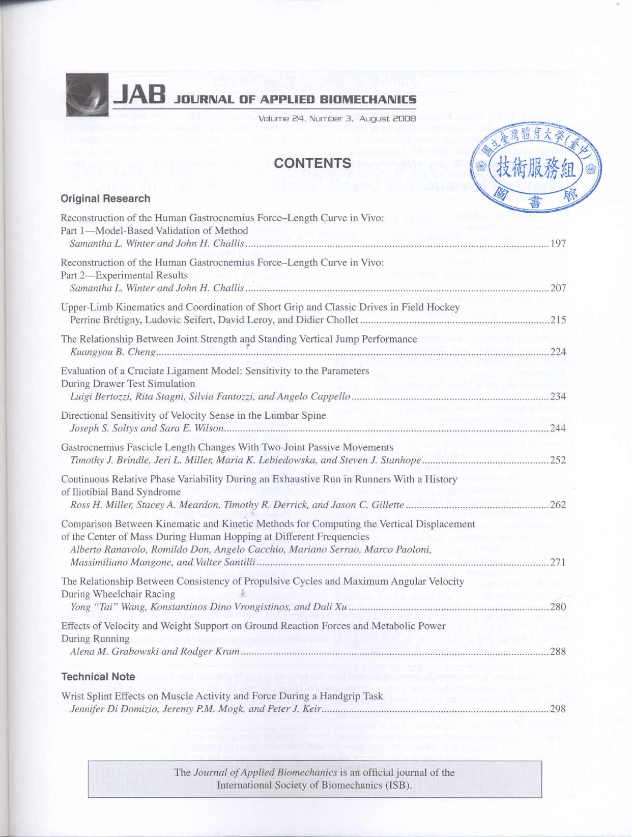 Journal of Applied Biomechanics 2008-08v.24-3(目次服務)